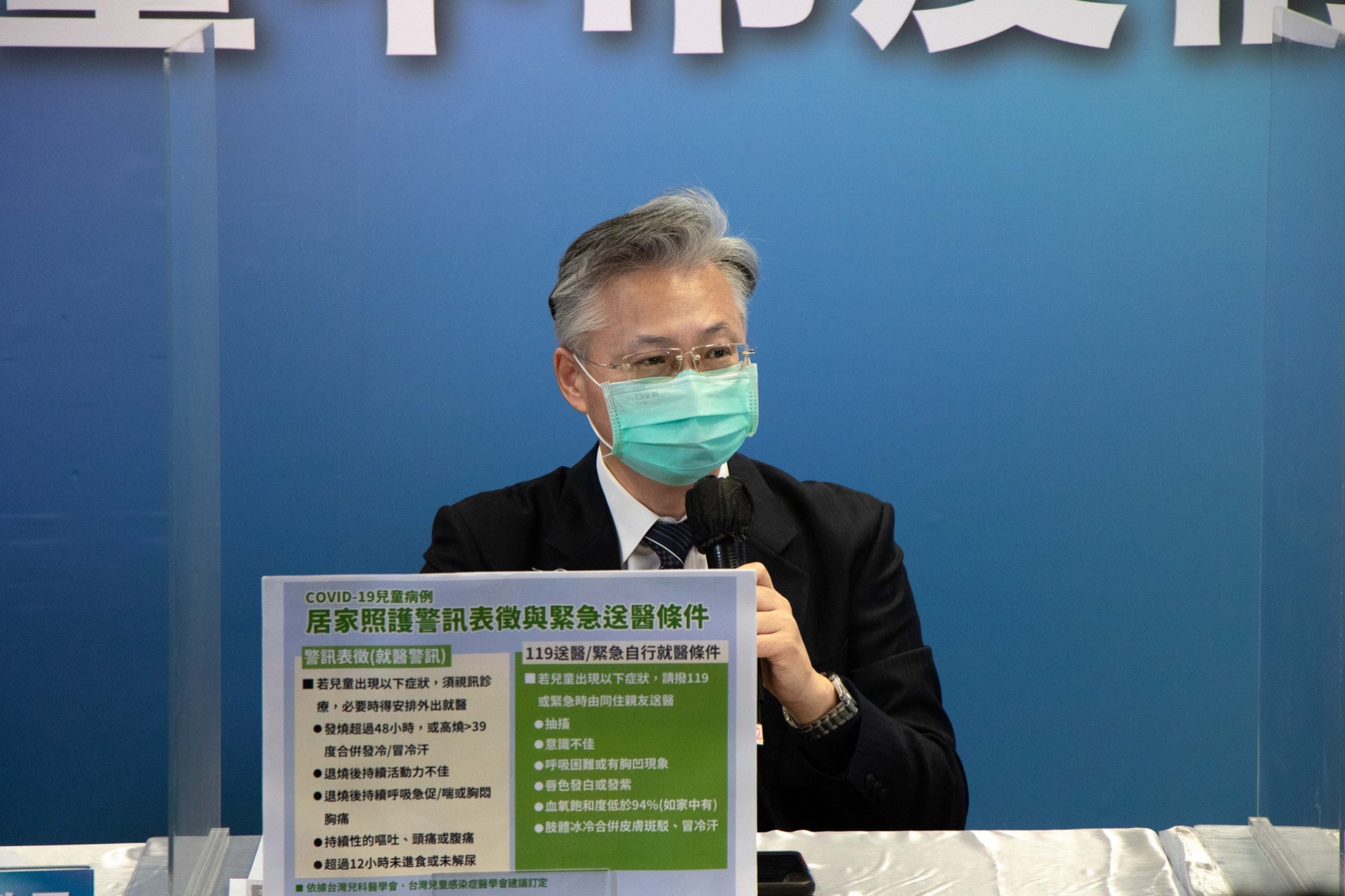 另外,若兒童出現以下症狀,建議撥打119或緊急時由同住親友送醫:一、抽搐;二、意識不佳;三、呼吸困難或有胸凹現象;四、唇色發白或發紫;五、血氧飽和度低於94% (如家中有血氧機);六、產生循環不良現象如肢體冰冷合併皮膚斑駁、冒冷汗。這些緊急狀況,包括侵犯到呼吸循環或中樞神經,都需要家長們緊急注意並趕快送醫。(4/21*7)