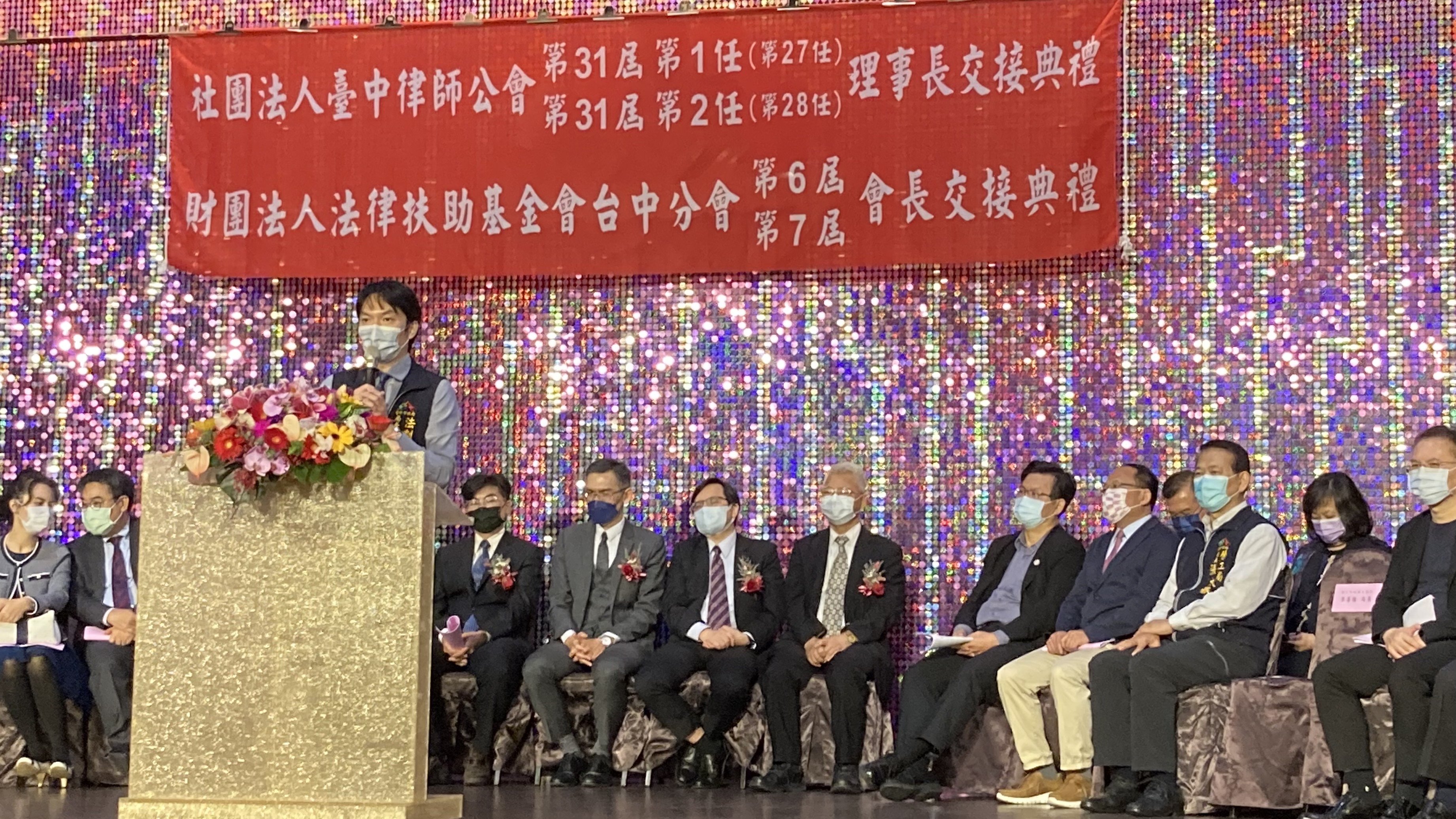 昨日典禮,包含法制局長李善植、勞工局長張大春、台灣高等檢察署台中檢察分署檢察長謝榮盛、台灣台中地方檢察署檢察長黃謀信、全國律師聯合會理事長陳彥希、法扶基金會前董事長林春榮、財團法人犯罪被害人保護協會台灣台中分會主任委員陳怡成等人均一同觀禮。(5/3*12)*法制局