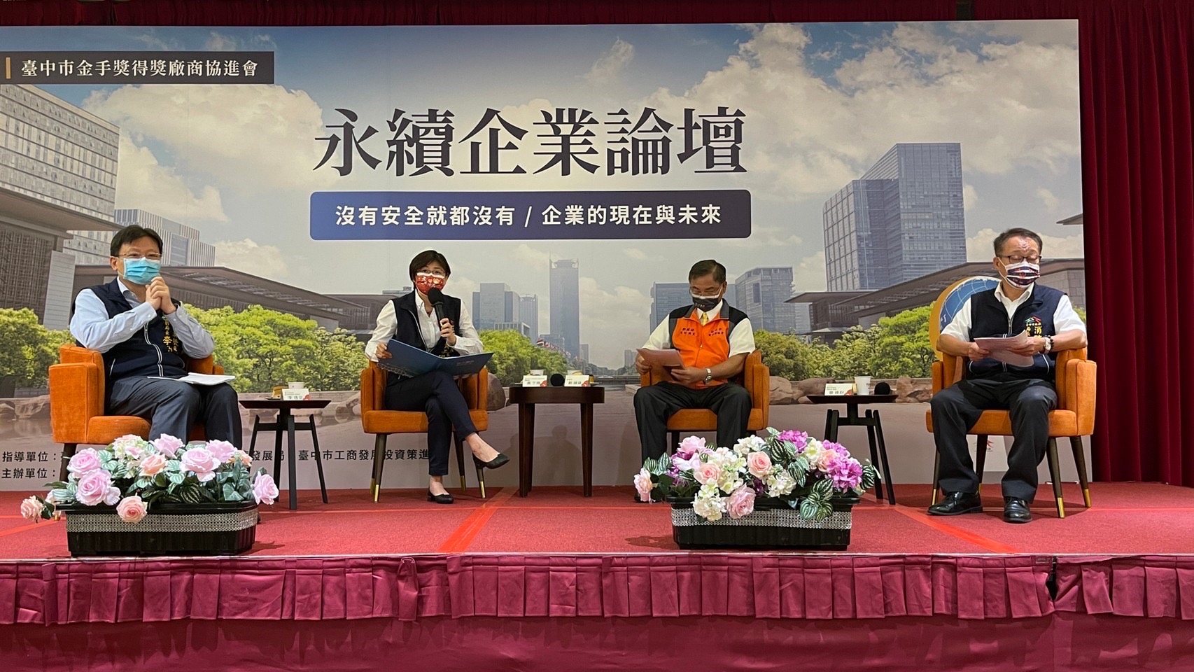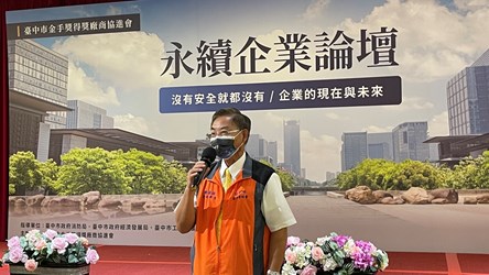 全球日益重視ESG議題,台中市府主動出擊參與台中市金手獎得獎廠商協進會主辦「永續企業論壇」,昨(24)日落幕,共115位企業主盛情與會。活動邀請消防局長曾進財及經濟發展局副局長李逸安專題演講,並由台中市工商發展投資策進會總幹事黃于珊擔任主談人,與二位講者及金手獎廠協理事長鄭國雄深度對談,針對永續企業實務執行的困難給予最直接的回饋。工策會黃總幹事特別感謝企業參與,中市府會持續擔任企業永續之路上最堅強的後盾。