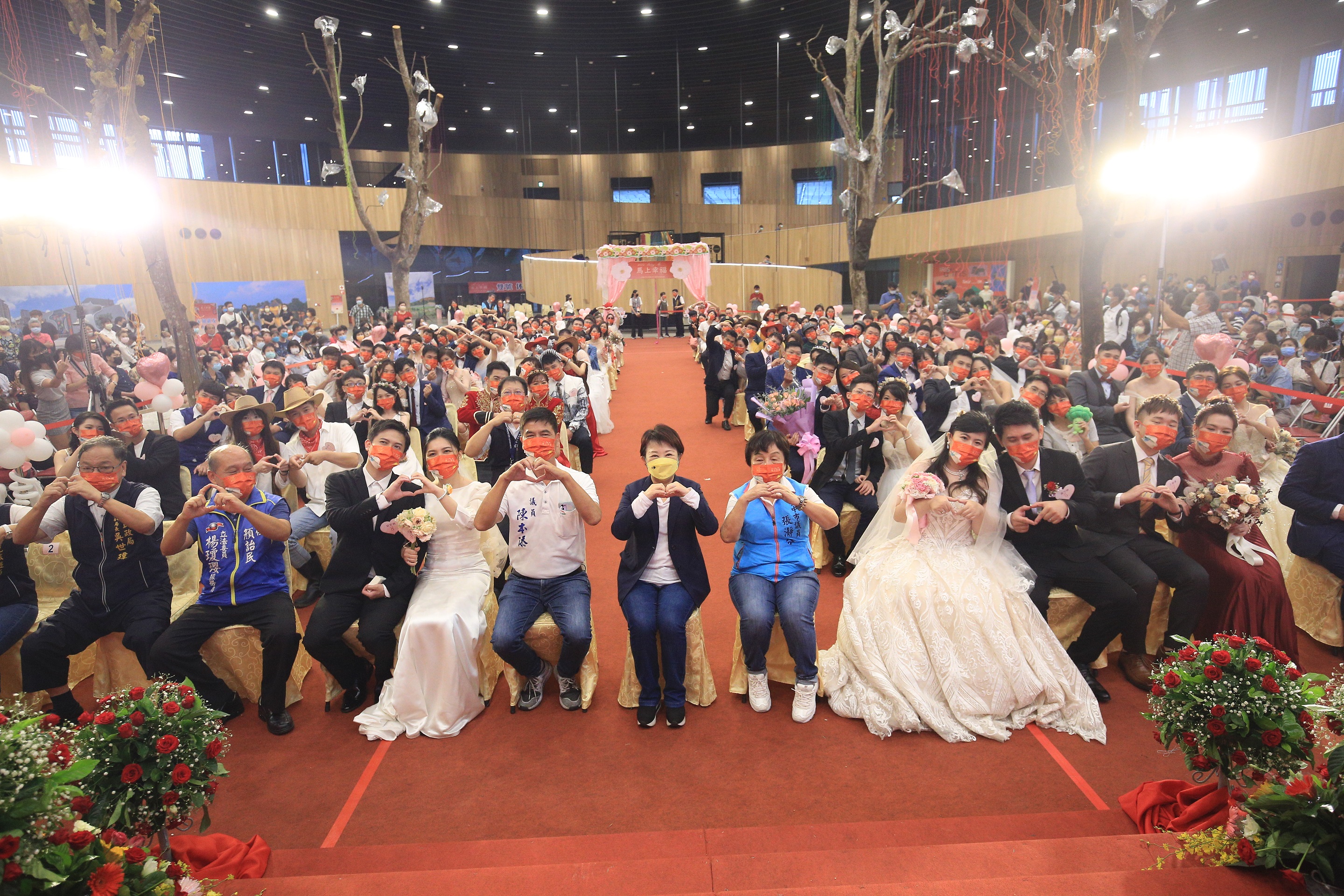 今日現場,包含盧市長、民政局長吳世瑋、觀旅局長韓育琪、市議員張瀞分、陳本添,各區區長及戶所主任皆到場浪漫見證。(9/3*3)*民政局