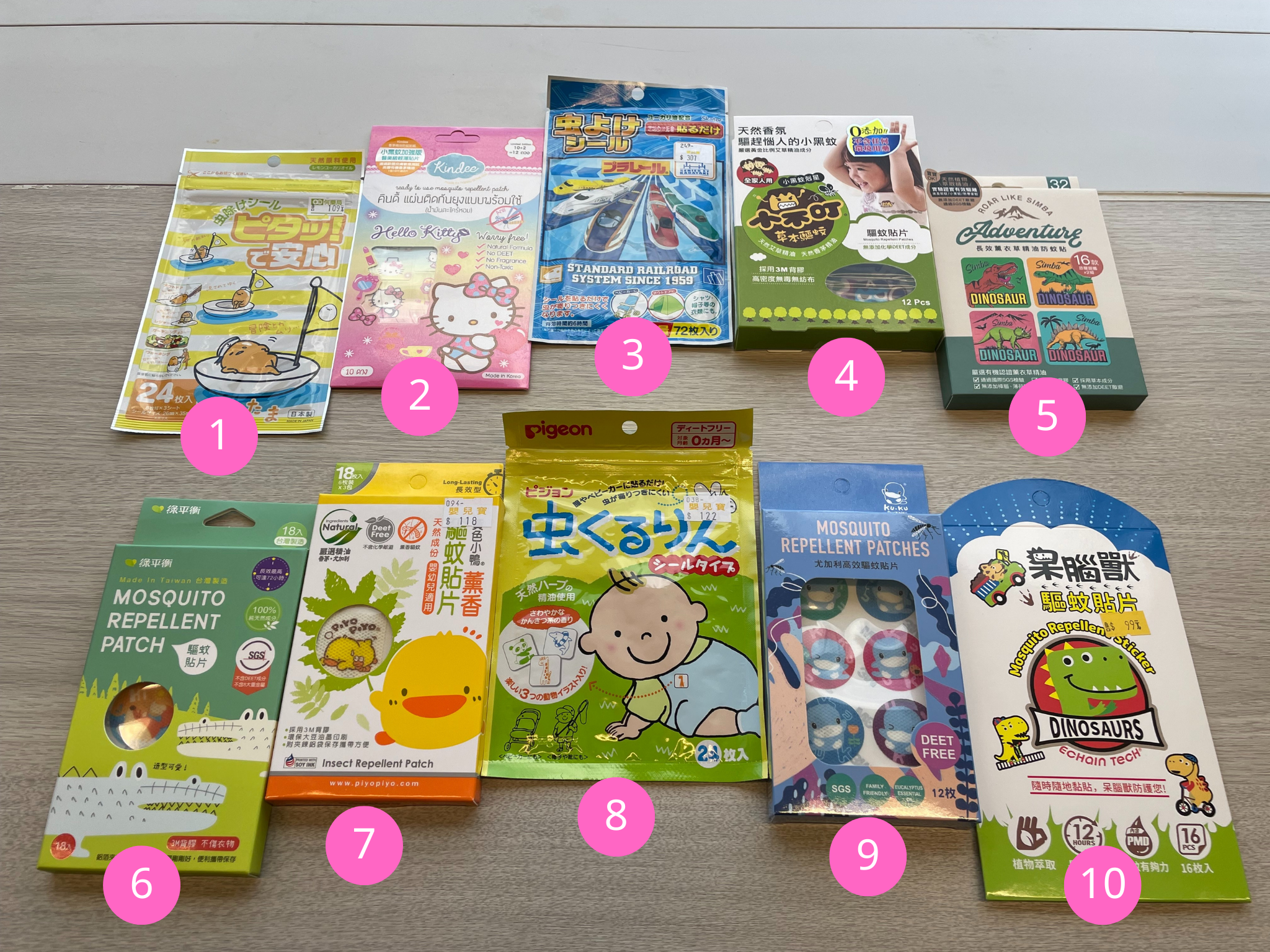 台灣是登革熱等傳染病盛行的地區,炎夏一到防蚊產品熱銷,其中防蚊貼片與防蚊液產品相較,貼片貼附於衣物上,不直接接觸皮膚,小朋友較不會誤摸或誤食。因此,父母親經常為孩童準備防蚊貼片以免蚊蟲叮咬。台中市政府法制局公布10款防蚊貼片的檢驗報告,檢測結果均不含DEET(敵避),其中7款商品雖驗出微量重金屬,但均低於安全限值,尚無影響人體健康之虞;而商品標示則全數合格。
