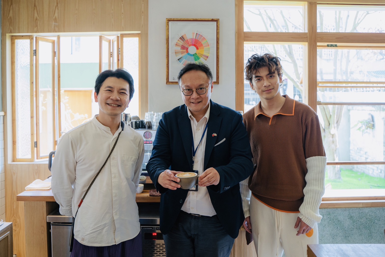 鄭局長表示,市府全⼒推動影視產業發展,提供劇組各項影視補助及獎勵措施,加上台中氣候條件優良,山、海、屯、城景色豐富,非常適合劇組取景拍攝。而《歡迎光臨 二代咖啡》全劇有90%於台中拍攝取景,感謝劇組特別邀請虛擬實境(VR)拍攝團隊,拍攝主場景精誠十二街老宅,讓觀眾能在雲端漫步二代咖啡,也串聯更多台中店家一同行銷台中,期待此劇能透過充滿溫度的場景,用一杯杯的咖啡傳遞一個個溫暖的故事。