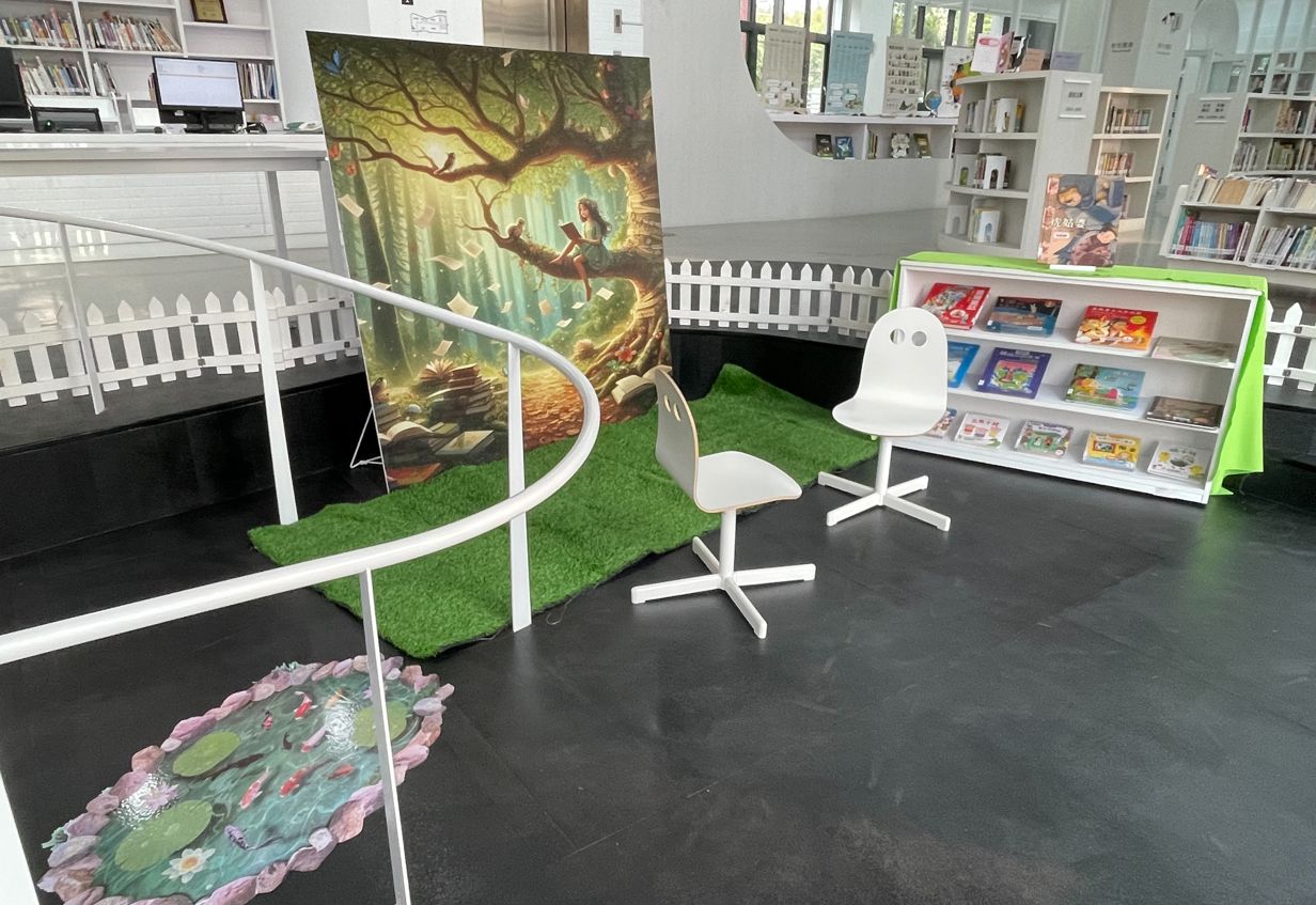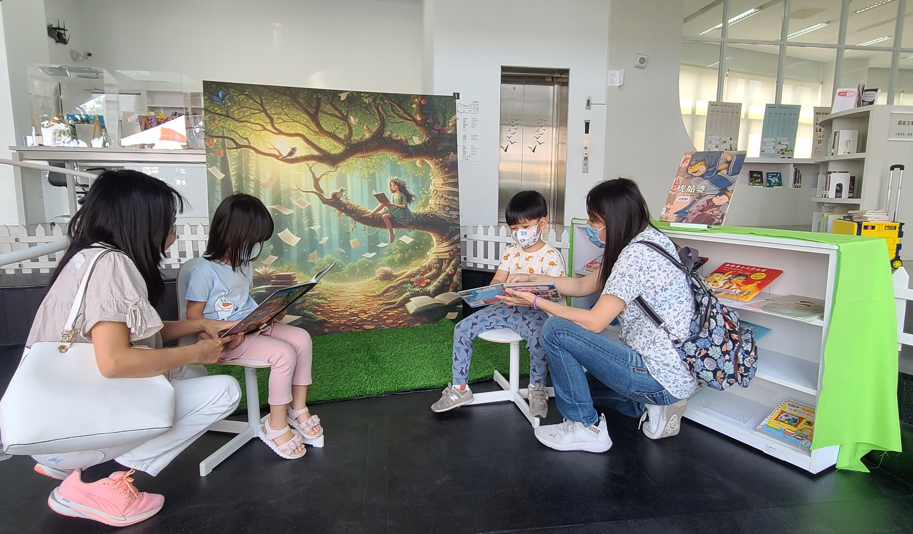 【童話樂趣】主題書展於本館一樓梯間展區展出。
