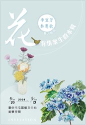 科班出身的林惠敏平時喜歡帶著相機去各地取材,並搭配禽鳥來呈現心中的四季美學。擅長將書法意趣帶入水彩繪畫的李宜芳則是藉由外出踏青、在現場使用簡易水彩進行「速寫」,把她觀察植物所感受到的靈動畫入紙面。如此媒材不同、作畫過程也不相同的兩人,花卉就是最大公約數,本次聯展希望帶給觀眾有趣的賞花經驗。