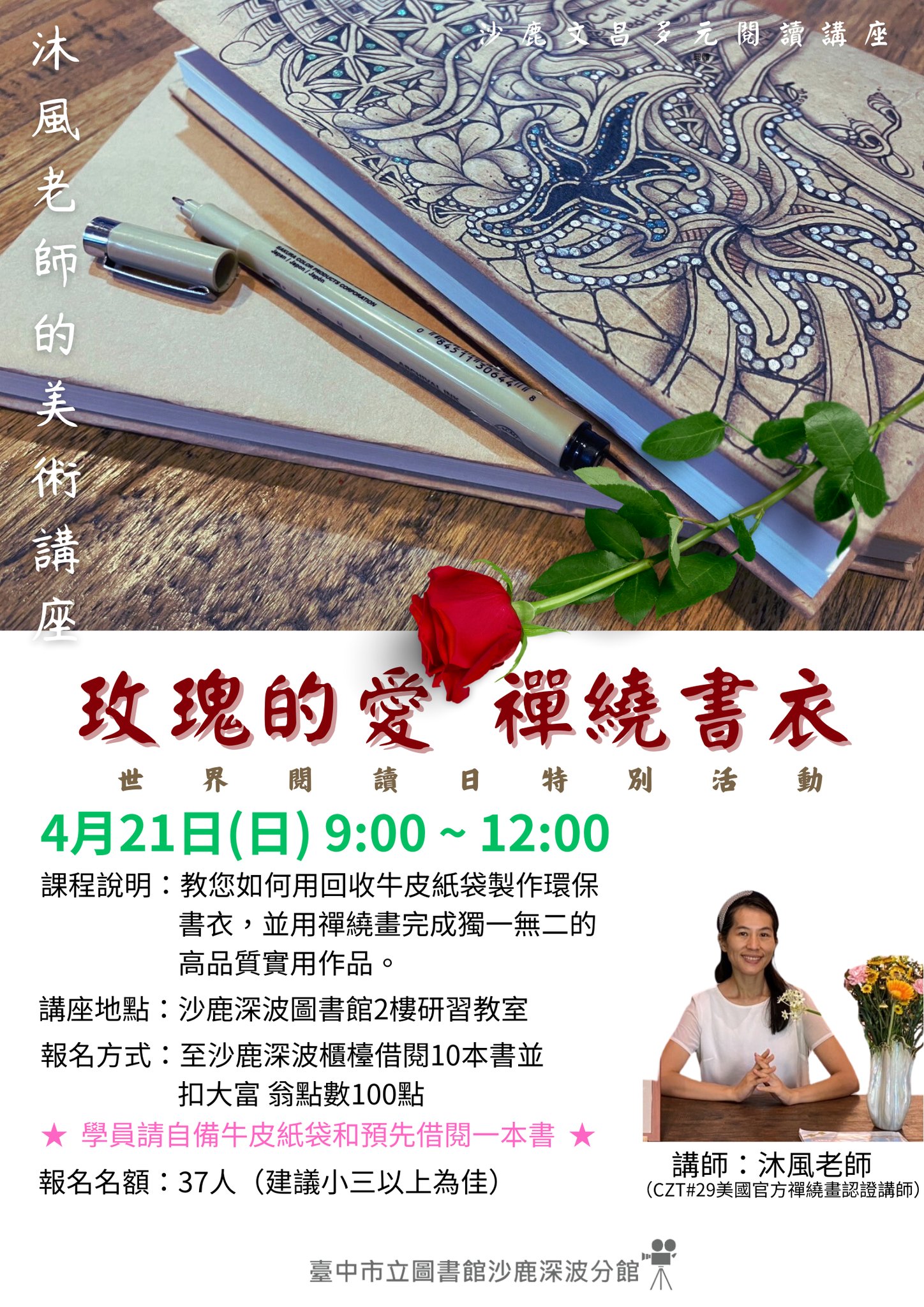 4月沐風老師的美術時間—「玫瑰的愛 禪繞書衣」