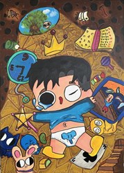 另外,「白日夢」中,夢如人生,畫中小學生天馬行空地在腦海裡建構出一個個情境,夢是多元宇宙不設限的蟲洞。但在夢外,既非夢中,亦非清醒,雕塑著永遠的歡樂和永遠的悲傷。