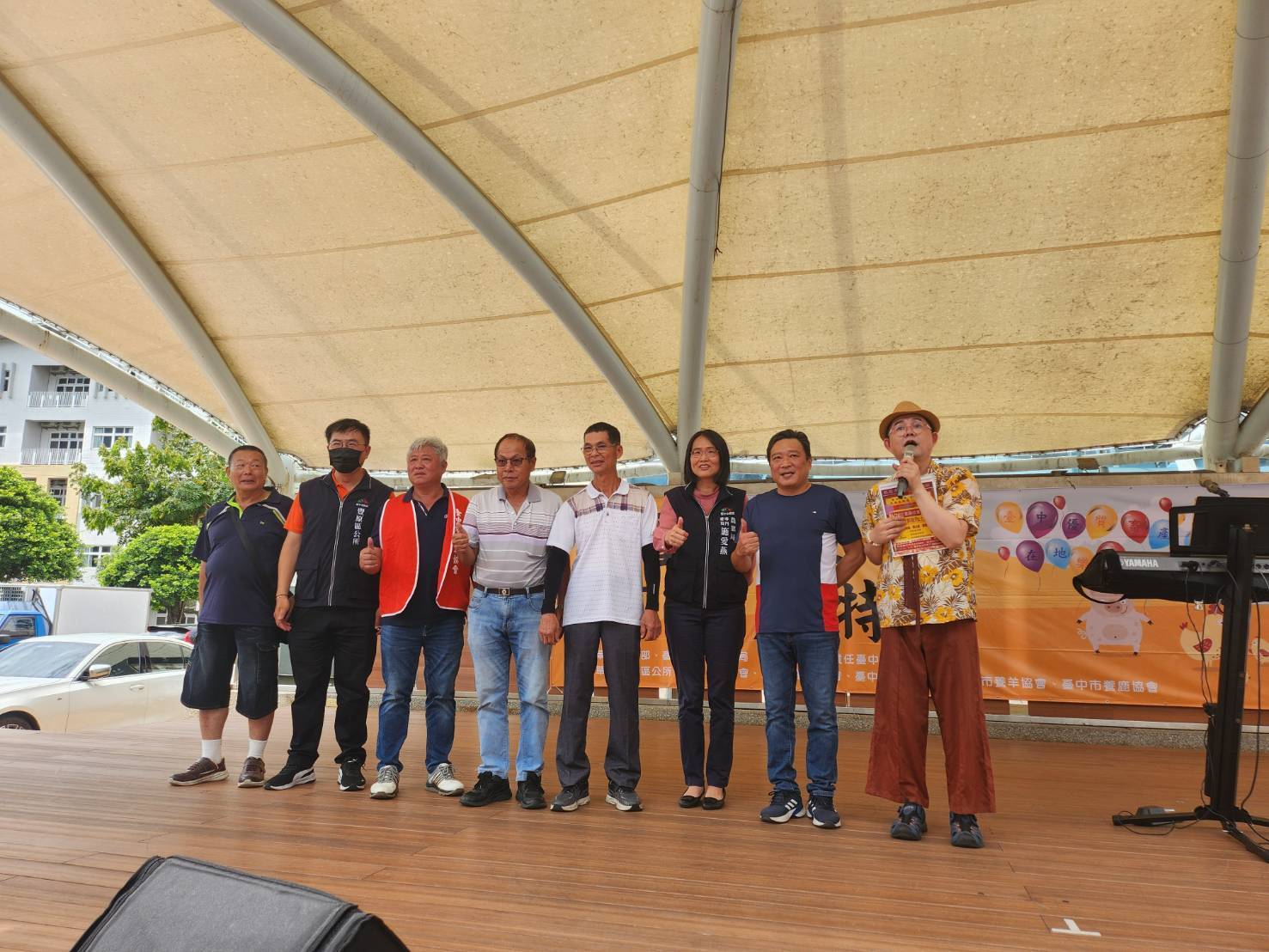 今日活動,農業局專門委員施愛燕、有限責任台中市養豬運銷合作社理事主席林大成、台中市養雞協會理事長王世琳、養豬協會理事長王文通及養鹿協會理事長邱松美等人皆到場共襄盛舉,共同推廣台中在地優質畜禽品牌。