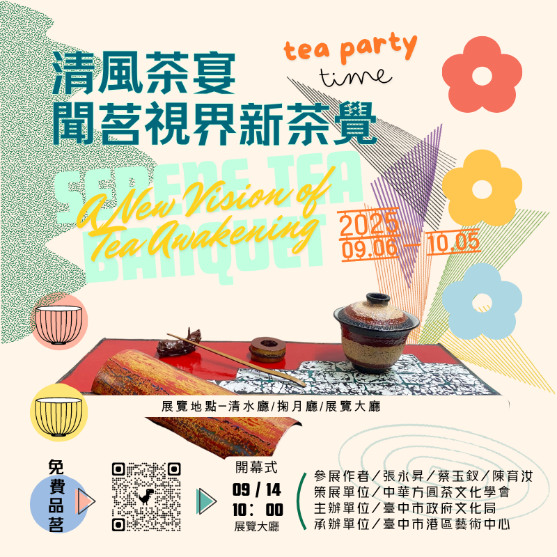 內容 2025清風茶宴以「茶覺・器識・席知」為主軸,展品計30件,於臺中市港區藝術中心展開一場結合視覺美學與感官體驗的茶文化展演,從臺灣茶葉風味、茶器設計到當代茶席美學,全面呈現臺灣茶文化的深層意涵與當代表現。