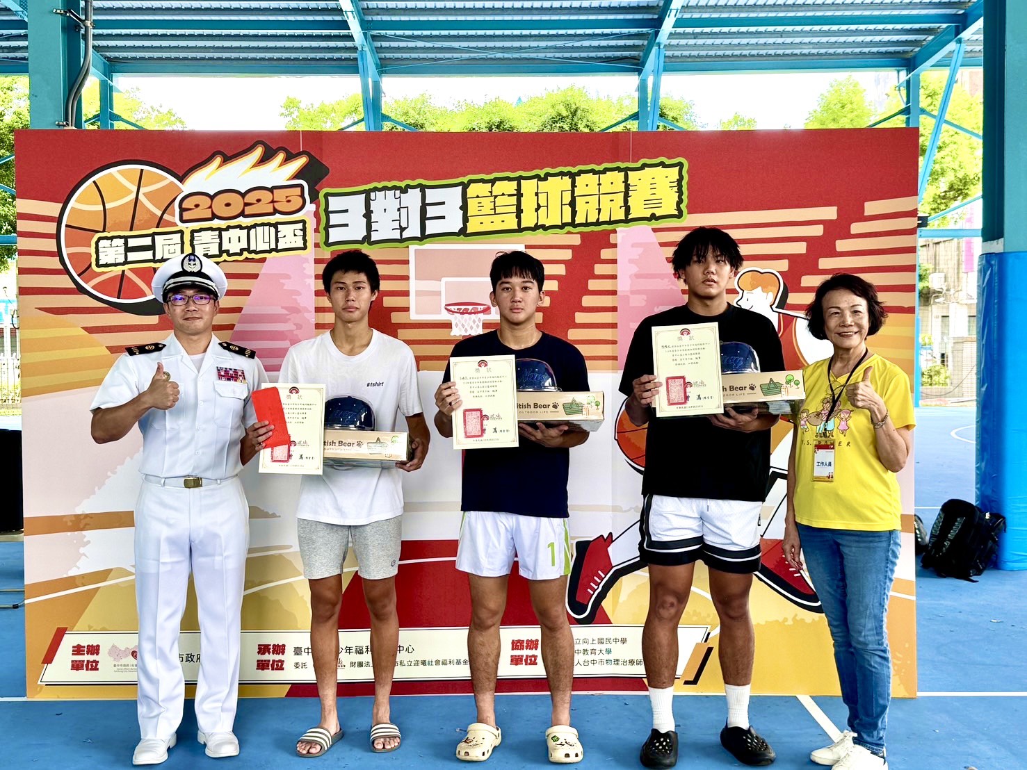 台中市青少年福利服務中心今(10)日在向上國中舉辦「力挽狂籃」第二屆青中心盃3對3籃球競賽,共有69組國高中生組隊參賽,隊伍數比去年增加一倍,少年選手加上觀賽的親友團和社區民眾,近600人在籃球場上吶喊聲援、揮灑汗水,展現台中市青少年的熱情與活力,最終由「黑白配」獲高中組女子冠軍、「東山再起」獲高中組男子冠軍;「自由女孩」獲國中組女子冠軍、「肥貓」獲國中組男子冠軍。