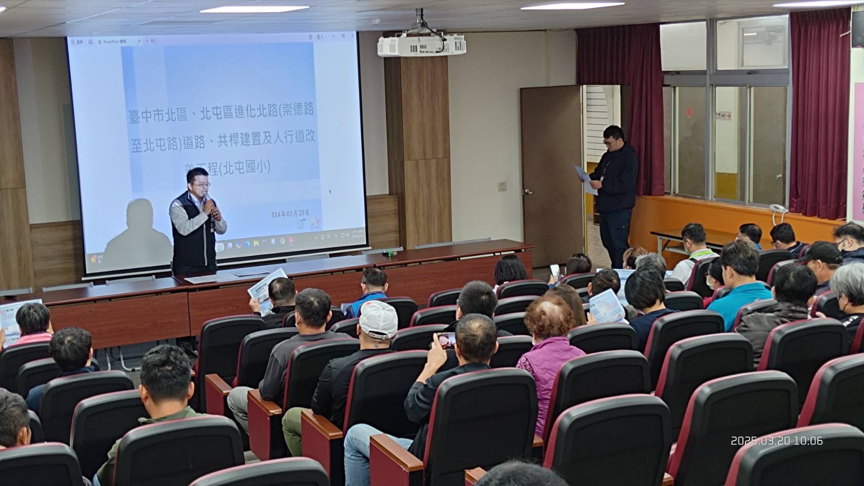 建設局補充,「進化北路(崇德路至北屯路)道路及人行道改善工程」全長約824公尺,為銜接台3線(北屯路)的重要通勤幹道,沿線經過北屯國小、北屯市場、郵局、銀行等生活據點。市府投入總經費約6,932萬元,並成功爭取中央經費挹注,工程自114年4月開工,施工內容包括人行道拓寬、增設行人庇護空間、優化路口設計、路面燙平、纜線下地與號誌照明共桿化等,預計115年完工後,將全面提升道路安全與服務品質。
