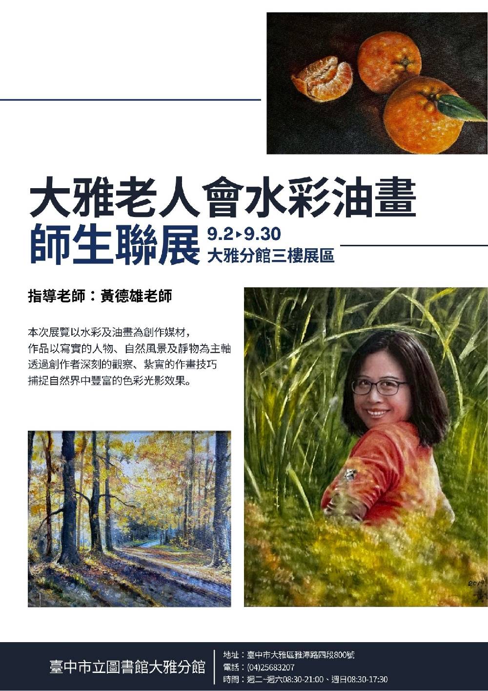 【大雅分館】9/2-9/30【大雅老人會師生水彩畫油畫聯合畫展】