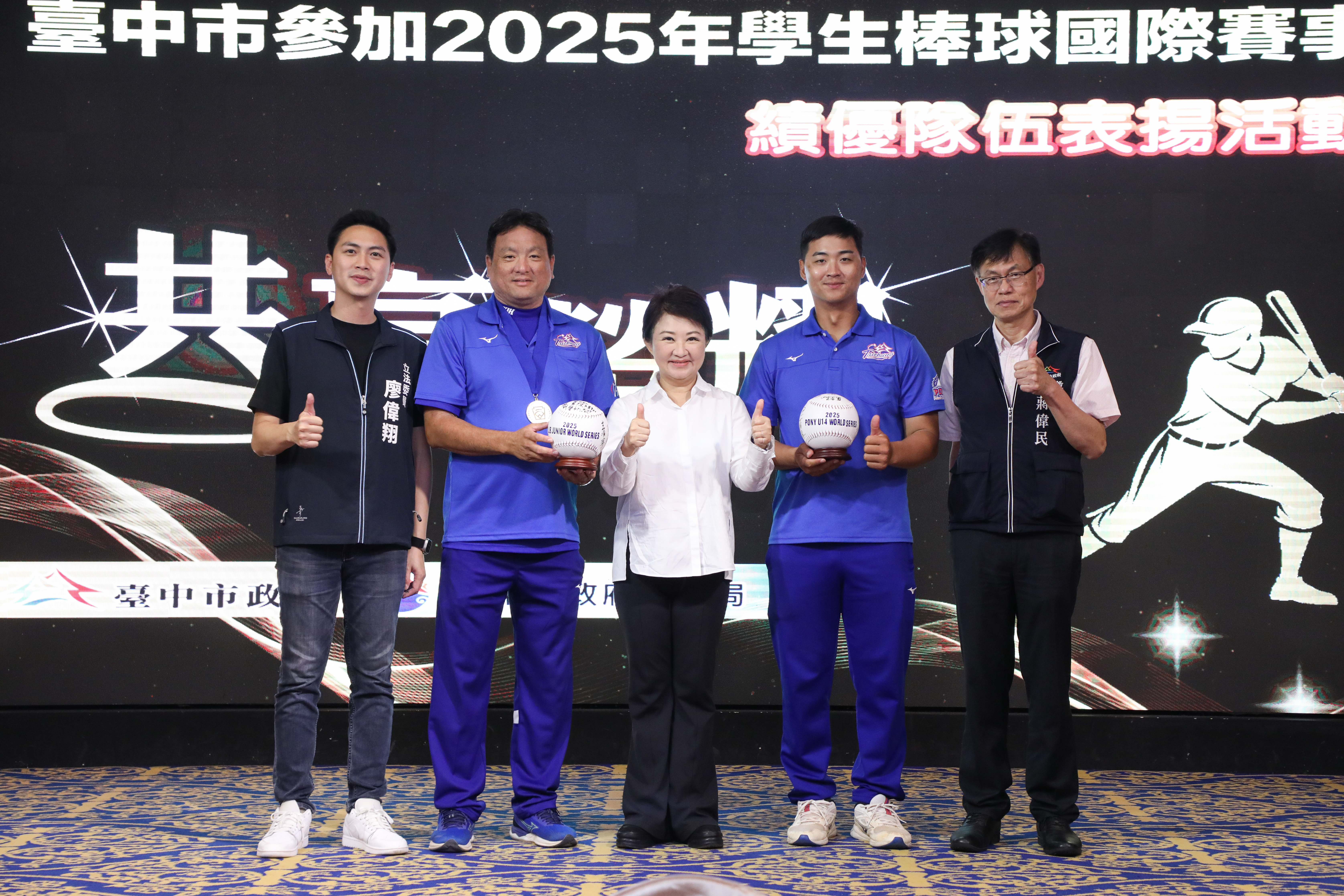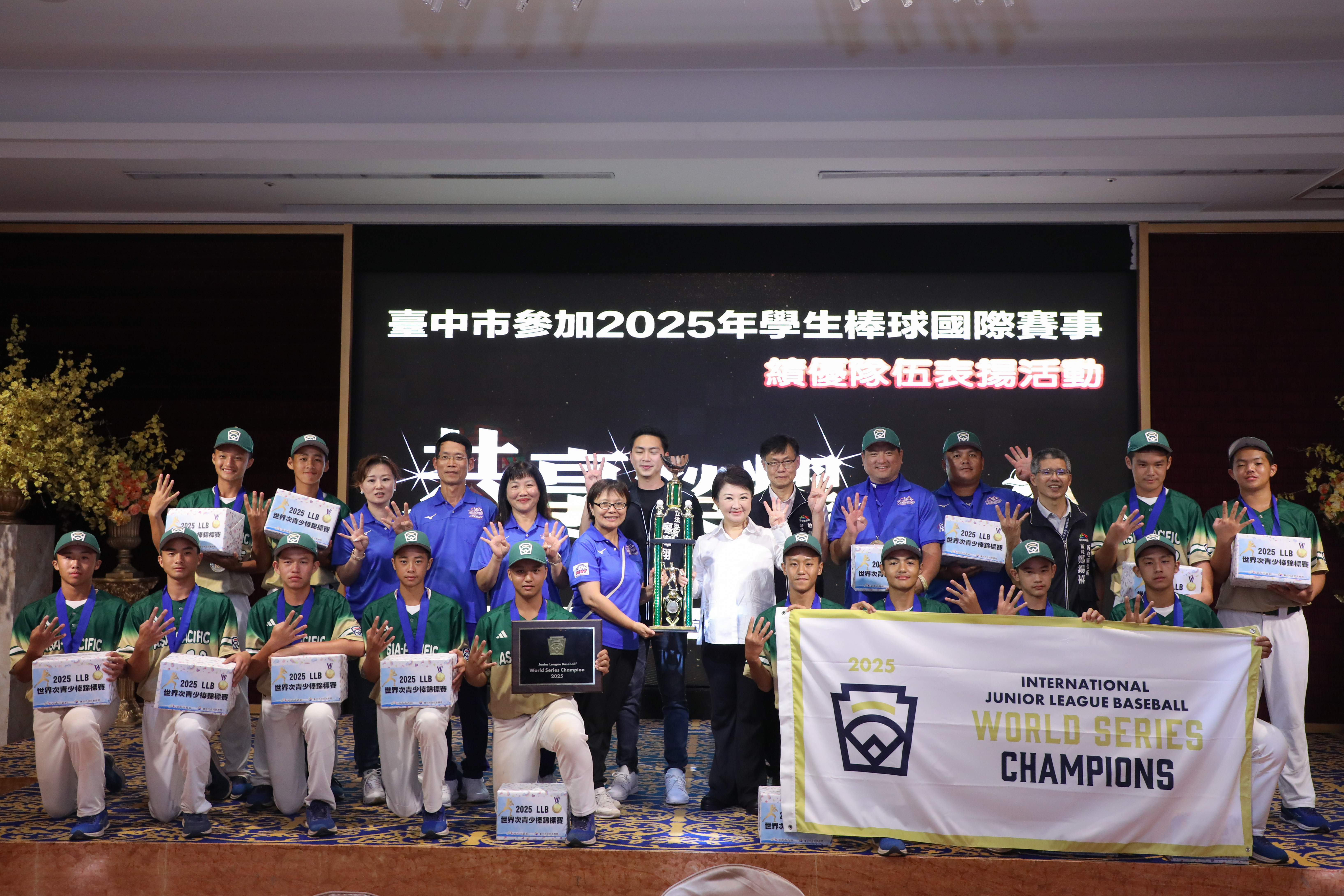 台中棒球小將今年在國際舞台大放異彩,勇奪「2025年世界少棒聯盟(LLB)世界次青少棒錦標賽」與「2025小馬聯盟(PONY)小馬級世界青少棒錦標賽」雙料世界冠軍,自由國小主責的亞太代表隊也在「2025美國貝比魯斯聯盟U12世界少棒錦標賽」摘下季軍;在「2025年第12屆U15亞洲青少棒錦標賽」中,中華隊順利封王、奪下隊史第8冠,更有2位台中選手入列,寫下城市榮耀。市長盧秀燕今(27)晚特別設宴表揚優秀選手與教練,感謝他們為國家、為台中爭光!