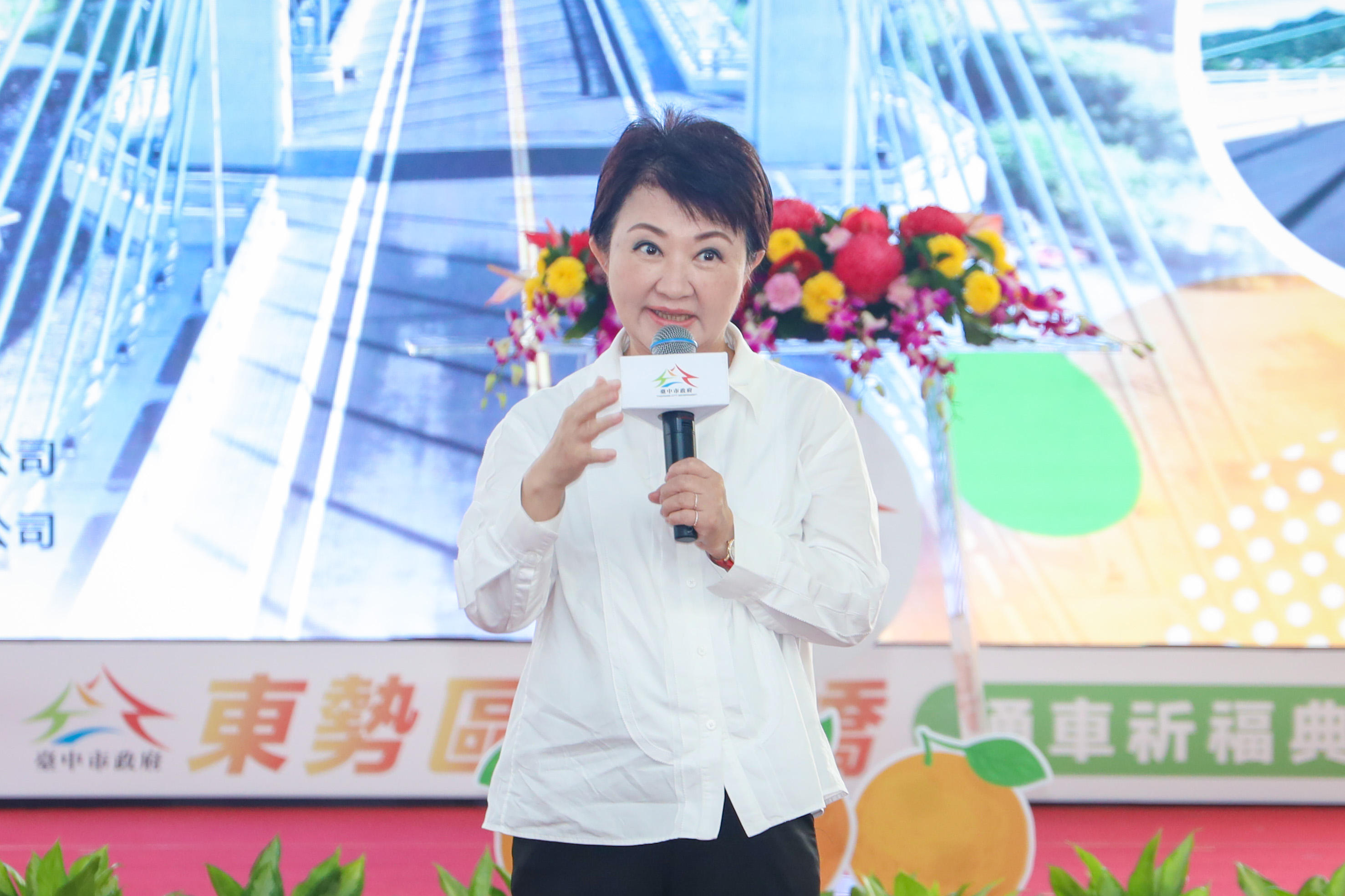 今日通車典禮,包含立法院江啟臣副院長、市議員張瀞分、吳振嘉、市府建設局長陳大田、客委會主委江俊龍、捷工局長蘇瑞文、豐原區長洪峰明、東勢區長翁培真、石岡區長徐天龍、新社區長林淑惠、東勢區農會理事長劉進業、豐原區戶政事務所主任夏秀琴、東勢區戶政事務所主任連詩季、石岡壩管理中心主任李政忠及在地里鄰長皆親自出席;市議員陳本添、邱愛珊、陳清龍、謝志忠、蔡成圭也派員共襄盛舉。