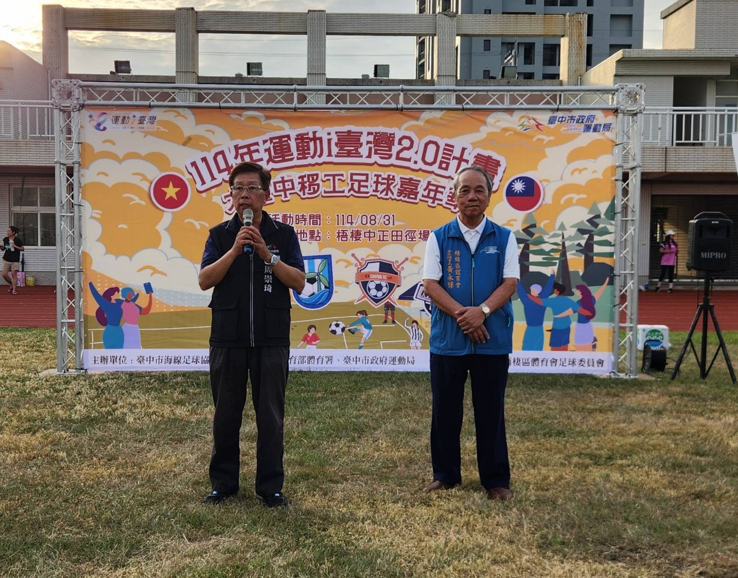 昨日活動,運動局主任秘書周崇琦、梧棲區體育會榮譽理事長黃永錄,以及台中市海線足球協會總幹事趙志宏均到場力挺,共同見證這場熱血賽事。