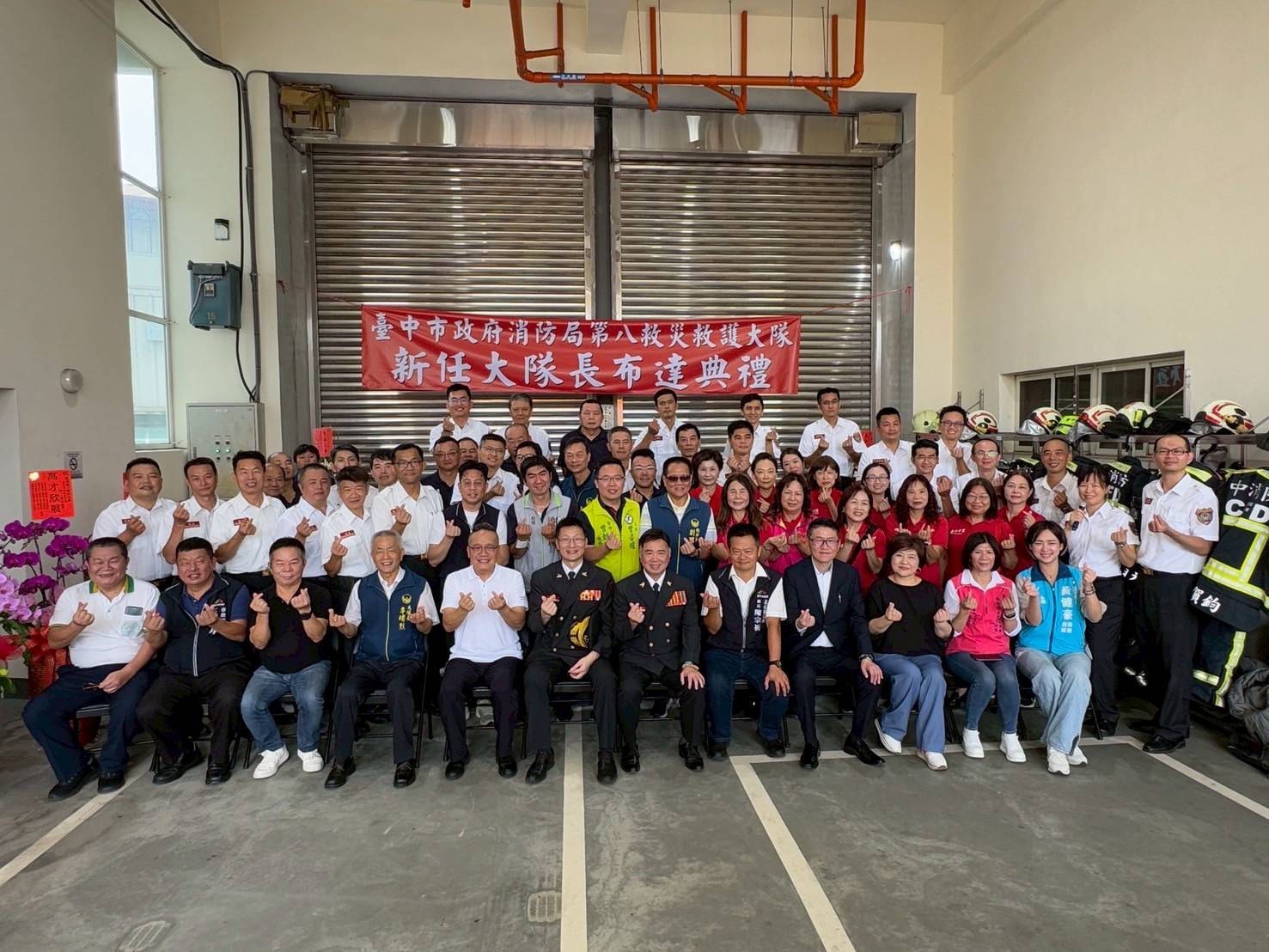 台中市政府消防局今(1)日上午舉辦第五救災救護大隊大隊長游易霖、第七救災救護大隊大隊長盧士偉及第八救災救護大隊大隊長呂鴻隆等三位新任大隊長布達典禮,由局長孫福佑、副局長楊元吉及副局長戴峻焜分別主持。消防局表示,將持續推動防救災整備及市民防護教育,確保台中市成為最安心的宜居城市。