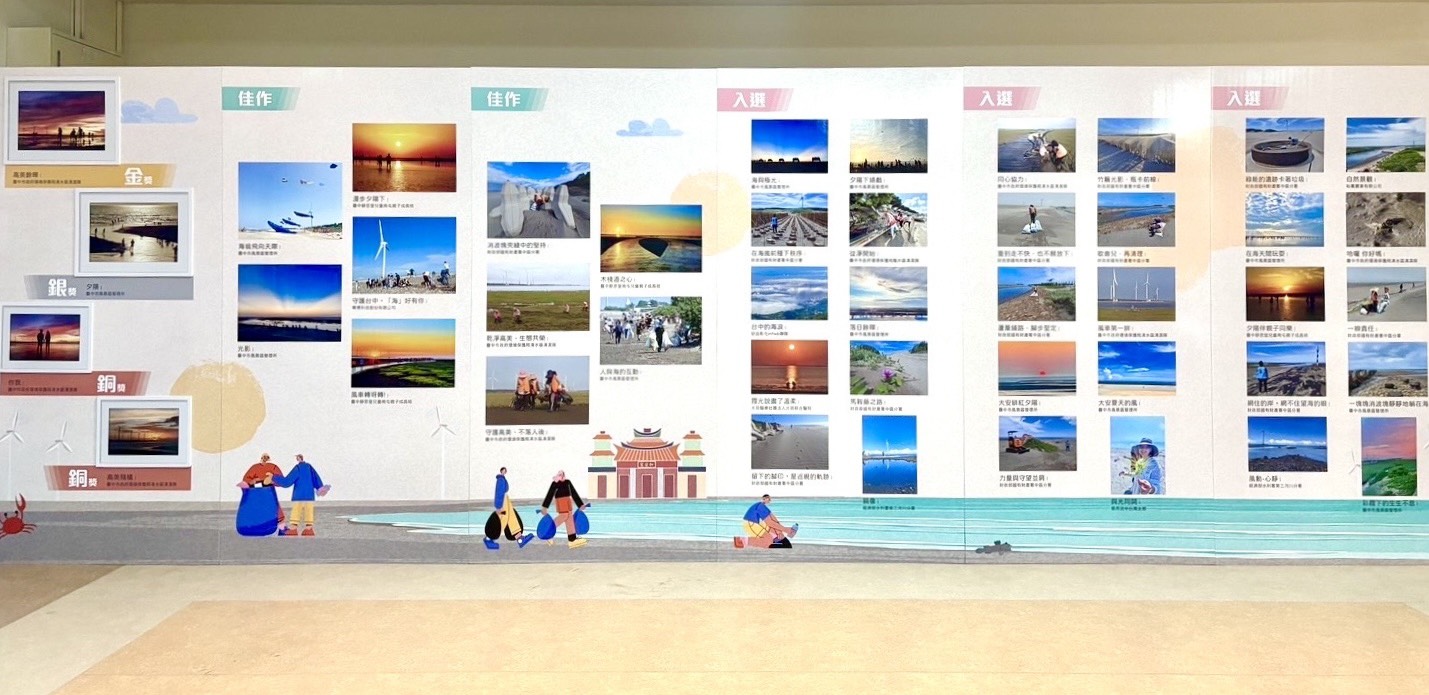 台中市府副秘書長林育鴻表示,此次參賽作品邀請來自參與守護台中海岸線及執行淨灘的政府部門、民間團體共同展現成果紀錄,透過鏡頭呈現台中市民對海洋的關心與對海岸清潔工作的支持。此次榮獲金獎的作品《高美餘暉》,由台中市政府環保局清水區清潔隊拍攝,畫面定格旅客於高美濕地欣賞落日晚霞的動人瞬間,展現壯麗海岸景致;銀獎與銅獎作品同樣捕捉了大台中地區海岸線的自然之美。