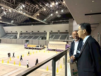 會展產業部分,參訪團與馬林展覽館福岡 A 館經營團隊交流營運模式與挑戰,並介紹台中國際會展中心(TICEC)高承重地板與減震設計,雙方並探討展館如何透過多元營運確保永續發展。