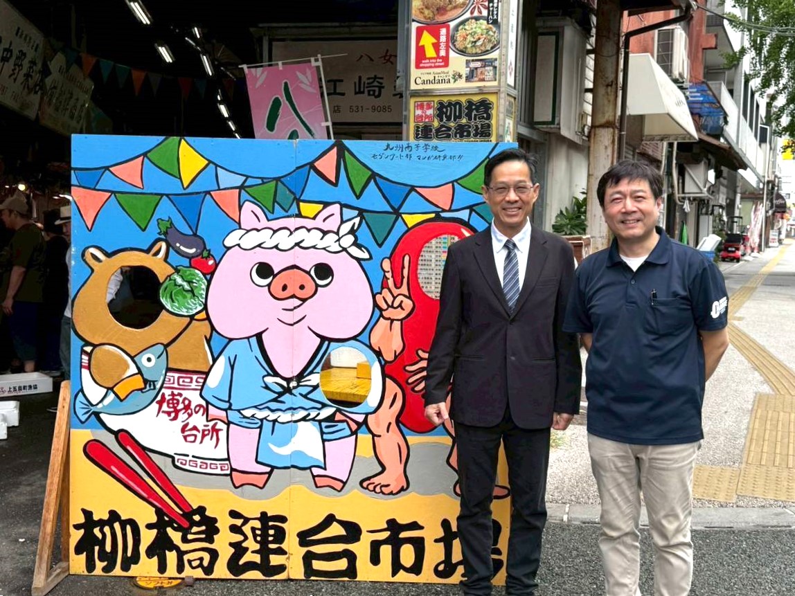 台中市政府經濟發展局長張峯源昨(1)日率團前往日本福岡展開市政參訪,包括福岡市柳橋連合市場、新創基地 Fukuoka Growth Next (FGN)、馬林展覽館福岡 A 館,並拜會台北駐福岡經濟文化分處長陳銘俊及福岡台灣貿易投資中心,雙方與就九州近年台商投資情況及區域經濟、金融發展趨勢進行交流,期盼協助台中企業拓展雙邊投資與貿易,推動產業合作及技術交流,深化台日經貿往來。