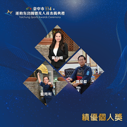 此外,體育先進的付出更是推動台中體育的重要力量。林以琳教師深耕特奧14年,帶領選手於冬季特奧勇奪佳績;林秀卿主委推動輕艇運動,培育出亞運金牌、進軍奧運的張筑涵與吳少璿;張榮升教師多年投入飛盤代表隊組訓,在113年全民運動會奪金,重返榮耀。黃心榆長年推動韻律體操裁判與評論工作,提升該項運動能見度;藍同利校長推廣太極拳進入校園與社區;譚至皙校長則推動劍道、壘球與棒球在山城落地生根;劉素娥主任更以主持人及推動者角色,積極參與身障運動推廣與國際交流,讓運動現場充滿榮耀與平等氛圍。
