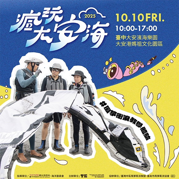 大安起風了!由台中市府觀旅局舉辦的「瘋玩大安海」系列活動,將於10月10日熱鬧登場,活動規劃多元水域體驗,邀請大小朋友一同走進大安濱海樂園及大安港媽祖文化園區,享受國慶假期的熱情氛圍。