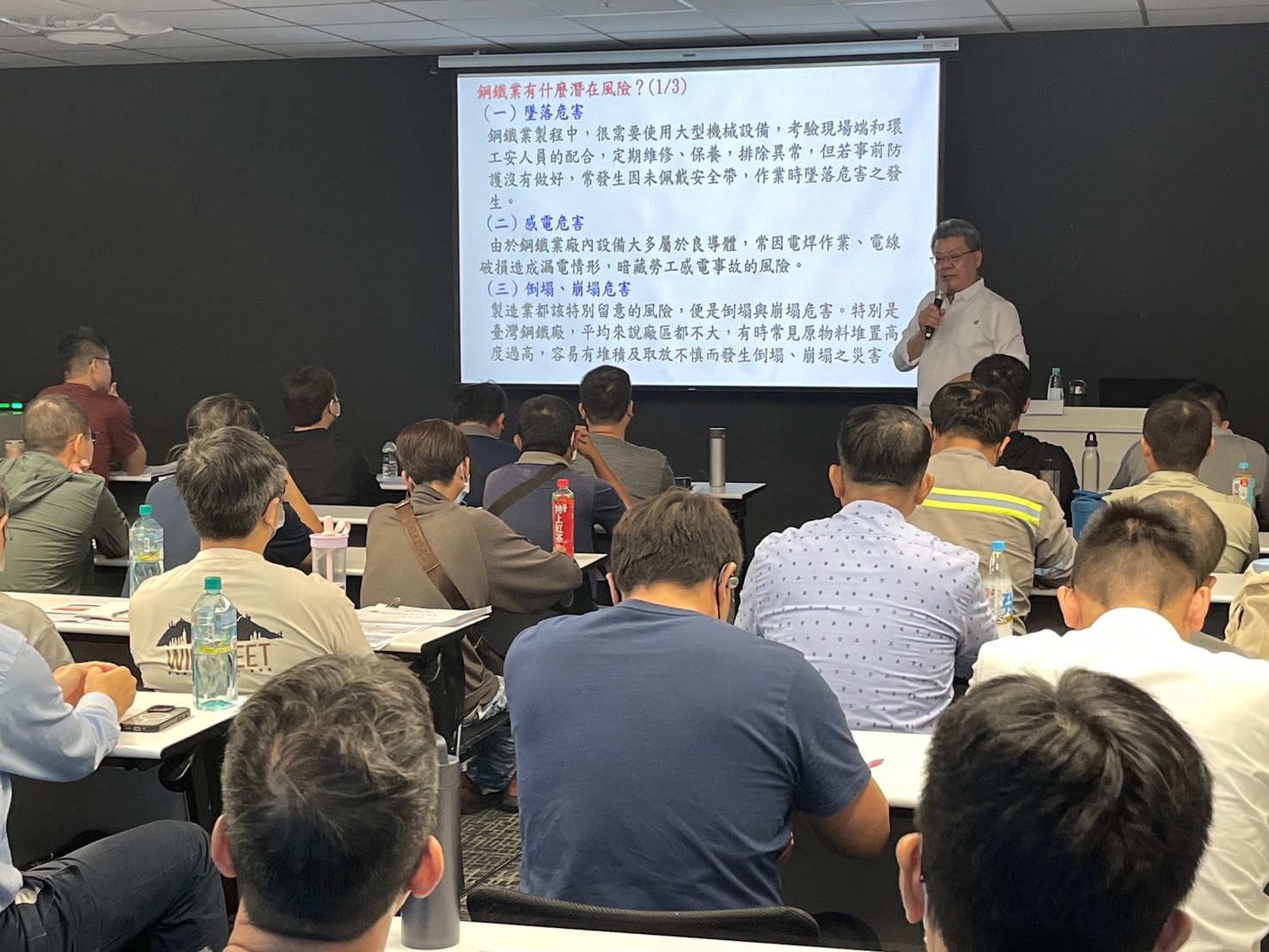 勞工局表示,鋼鐵製程包含冶煉、鑄造、軋延等,易伴隨火災、物體飛落、倒塌、切割捲夾等風險;而職業災害的發生,往往源於機械缺乏安全防護或人員危害意識不足。因此研習會下半場鎖定鋼鐵業常見的「機械切割捲夾」高風險危害進行預防講習。此研習課程針對肇災原因及預防措施進行講授,用各種防災實務與案例經驗證明「安全才是企業永續發展的基石」。
