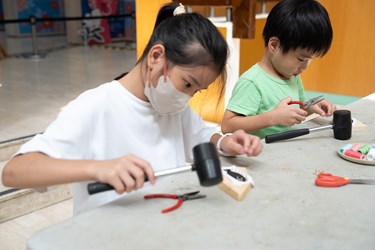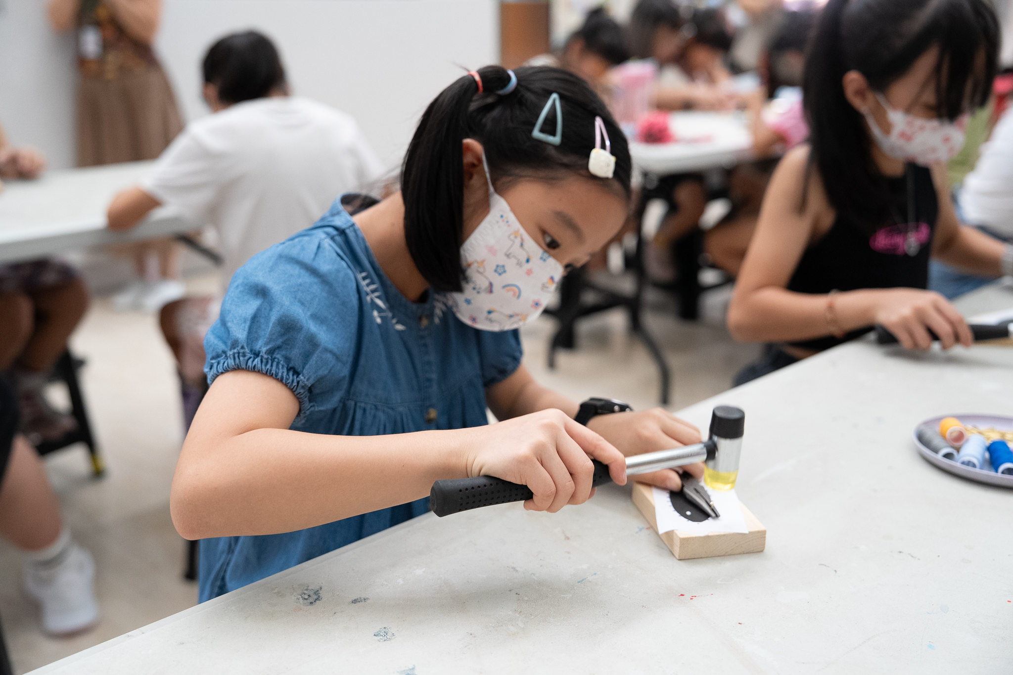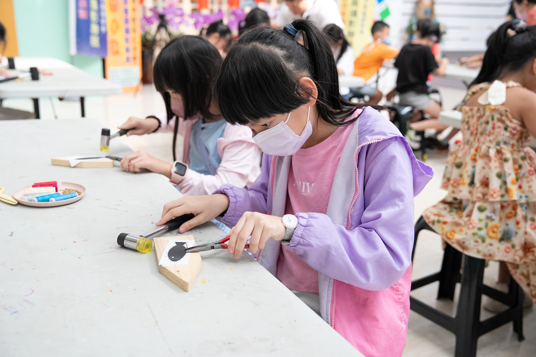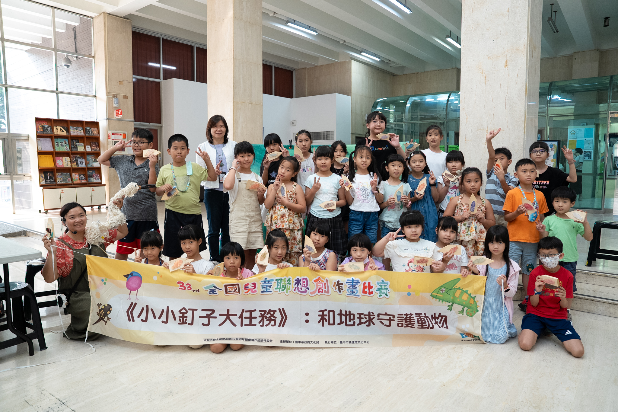 一張白紙,一個圖形,就能打開孩子無限的想像力!第33屆全國兒童聯想畫徵件活動熱鬧展開,前導宣傳活動《小小釘子大任務》於9月3日在台中市葫蘆墩文化中心登場,邀請失親兒基金會與學校美術班共30位學童參與,透過「劇場故事+手作創作」體驗海洋守護的冒險故事,一邊親手完成「釘畫創作」,用最純真的創意守護地球。