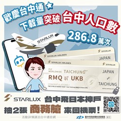 台中市政府推出的數位市民平台《台中通TCPASS》APP,下載次數已突破286.8萬,超越台中市人口總數,是生活不可或缺的數位小幫手。為慶祝這項里程碑,數位發展局舉辦抽獎活動,送出星宇航空台中飛日本神戶商務艙來回機票,作為回饋市民的豪華大獎。日前已抽出兩位幸運得主並於今(5)日舉行贈獎典禮,現場氣氛歡樂,見證《台中通》成為市民生活中最受歡迎的數位服務,鼓勵更多民眾加入下載行列,一起享受智慧便利生活。