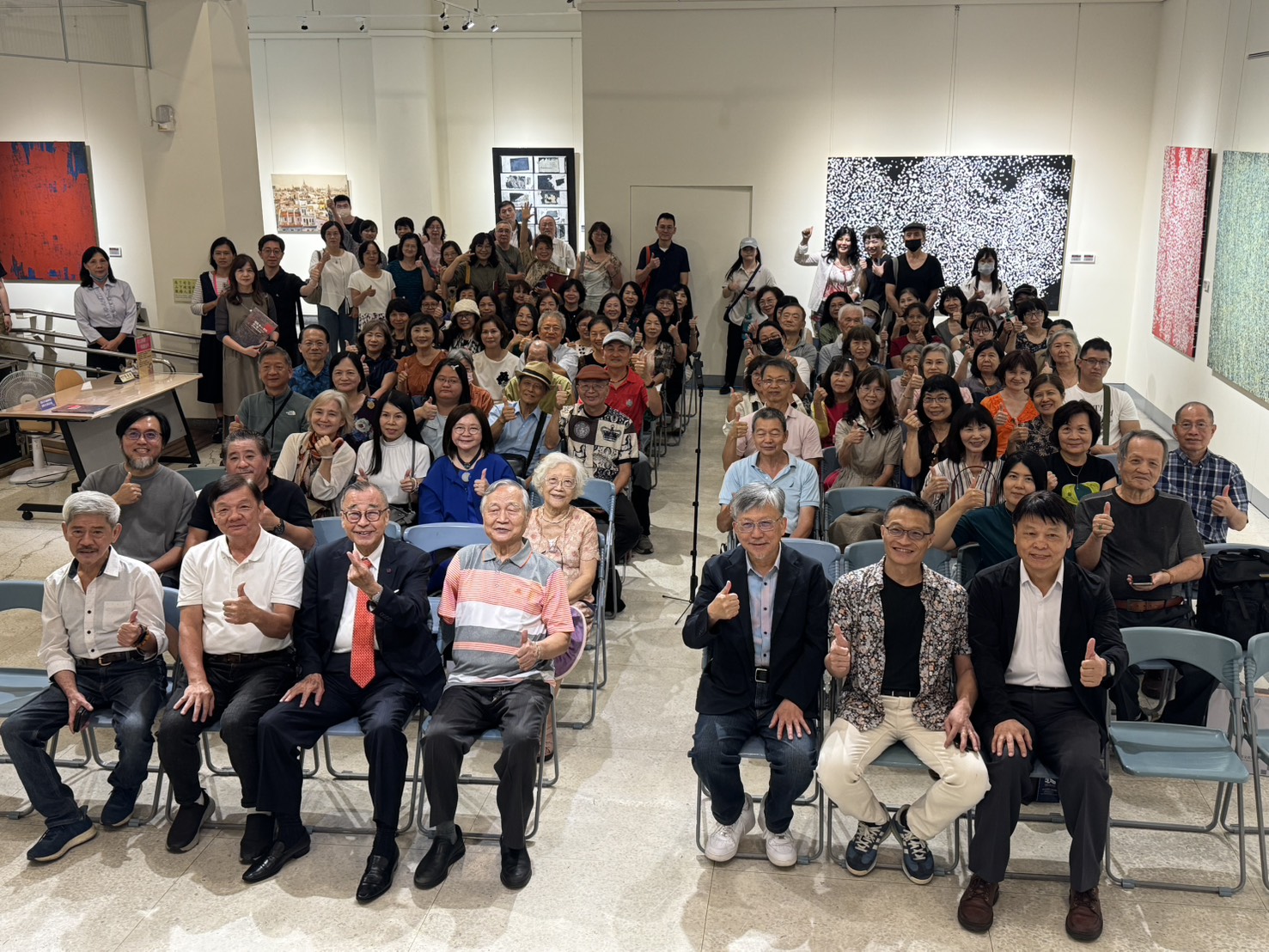 今日開幕式,包含文化局副局長曾能汀、前總統府資政廖了以、前國立台灣美術館館長廖仁義、前東海大學創意設計暨藝術學院院長林文海、台灣中部美術協會榮譽理事長倪朝龍、廖本生及劉哲志、大亞洲藝術聯盟協會理事長鍾經新,以及眾多藝術家均到場參與。