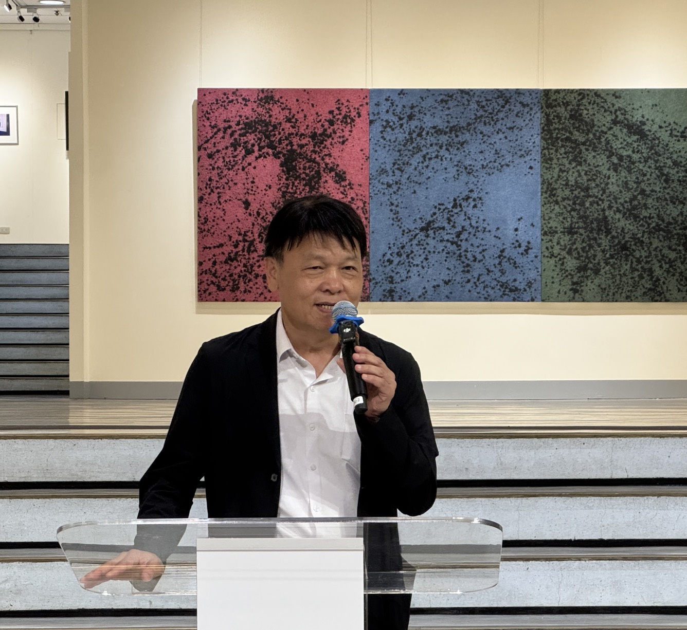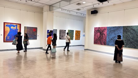 台中市大墩文化中心即日起至9月24日於大墩藝廊(一)推出「偶遇.無心.偶然 走一迴-廖吉雄85回顧展」,橫跨近35年的創作歷程,精選51件平面作品,邀請觀眾走進廖吉雄老師藝術與生命交織的深刻旅程。今(7)日台中市政府文化局副局長曾能汀出席致意,表達對廖吉雄老師創作精神的高度肯定與支持,更鼓勵宛如藝術鬥士的藝術家持續創作。此展也首度導入全彩電子標籤系統,取代傳統紙本說明卡,透過專屬軟體批次更新展品資訊,不僅節省人力與紙張、減少碳足跡,更提供觀者更清晰、生動的觀展體驗。