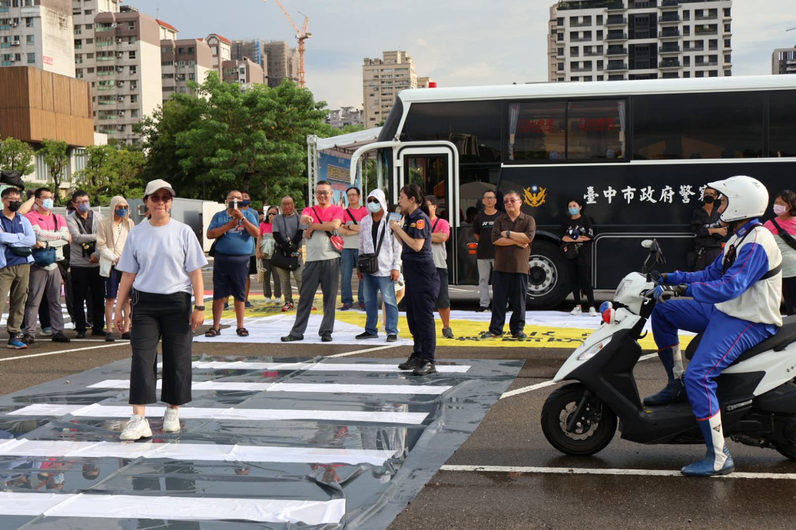 外送員按件計酬,工作與時間賽跑,增加交通風險,為提升駕駛道路安全觀念,台中市政府交通局、警察局、勞工局、衛生局及交通部公路局台中區監理所今(8)日共同舉辦「外送員安全駕駛體驗宣導活動」,因應外送員常見的前三大肇事原因,包含未保持行車安全距離、其他不當駕車行為及轉彎車未讓直行車先行,特別以機車實際演練煞停距離認知、大型車視野死角及內輪差情境體驗、停讓行人宣導示範,呼籲外送員勿搶快,安全最重要。