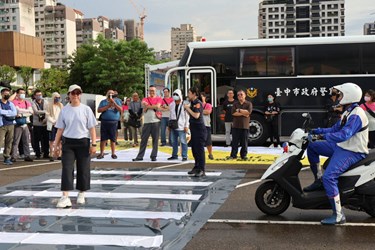 葉局長指出,透過活動中的大型車輛實際動態演示,讓外送員實際體驗駕駛過程中,較容易疏忽的內輪差及視野死角,如何在危險情境下安全騎乘,行經無號誌路口的路權禮讓觀念,以及近年國人關注的停讓行人宣導,利用模擬酒駕眼鏡宣導不酒駕等道路上常遇到的狀況,加強外送平台的夥伴對防禦駕駛,將正確駕駛觀念融入外送工作中,守護自身安全,也保障其他用路人的安全。