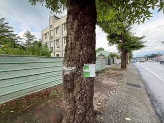 建設局提醒,施工前將於現場提前逐株張貼公告,提醒用路人注意;當天將配合交通管制措施,移除危木期間,車道作業會有行車空間縮減,請經過的民眾配合現場交維人員指揮,感謝市民朋友的理解與體諒,一同讓台中更安全宜居。(9/9*17)*建設局