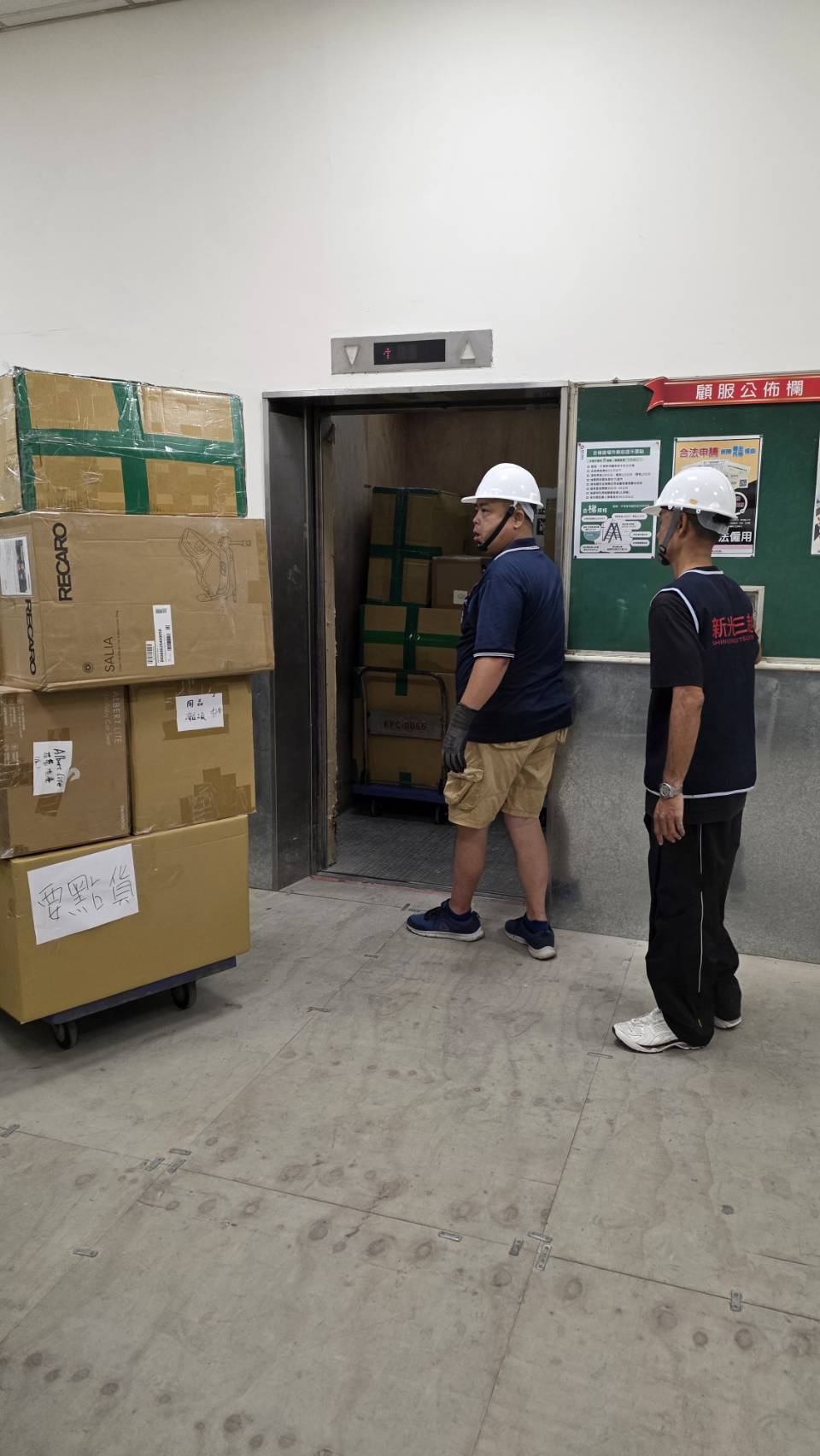 垂直搬運作業以四部貨梯為主要垂直運輸工具,貨梯設定僅在指定開放時段停靠對應樓層,以強化作業安全與效率。