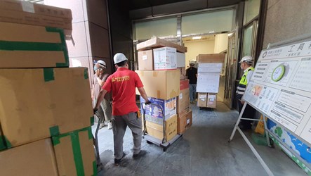 依照計畫,今日預定人流250人次、車流67部貨車進入,動線管制方面,所有進貨車輛均由市政北七路進入,並經由惠來路、市政北七路駛出,現場配置交通維持人員引導車流,以確保進場及卸貨流程順暢無阻。