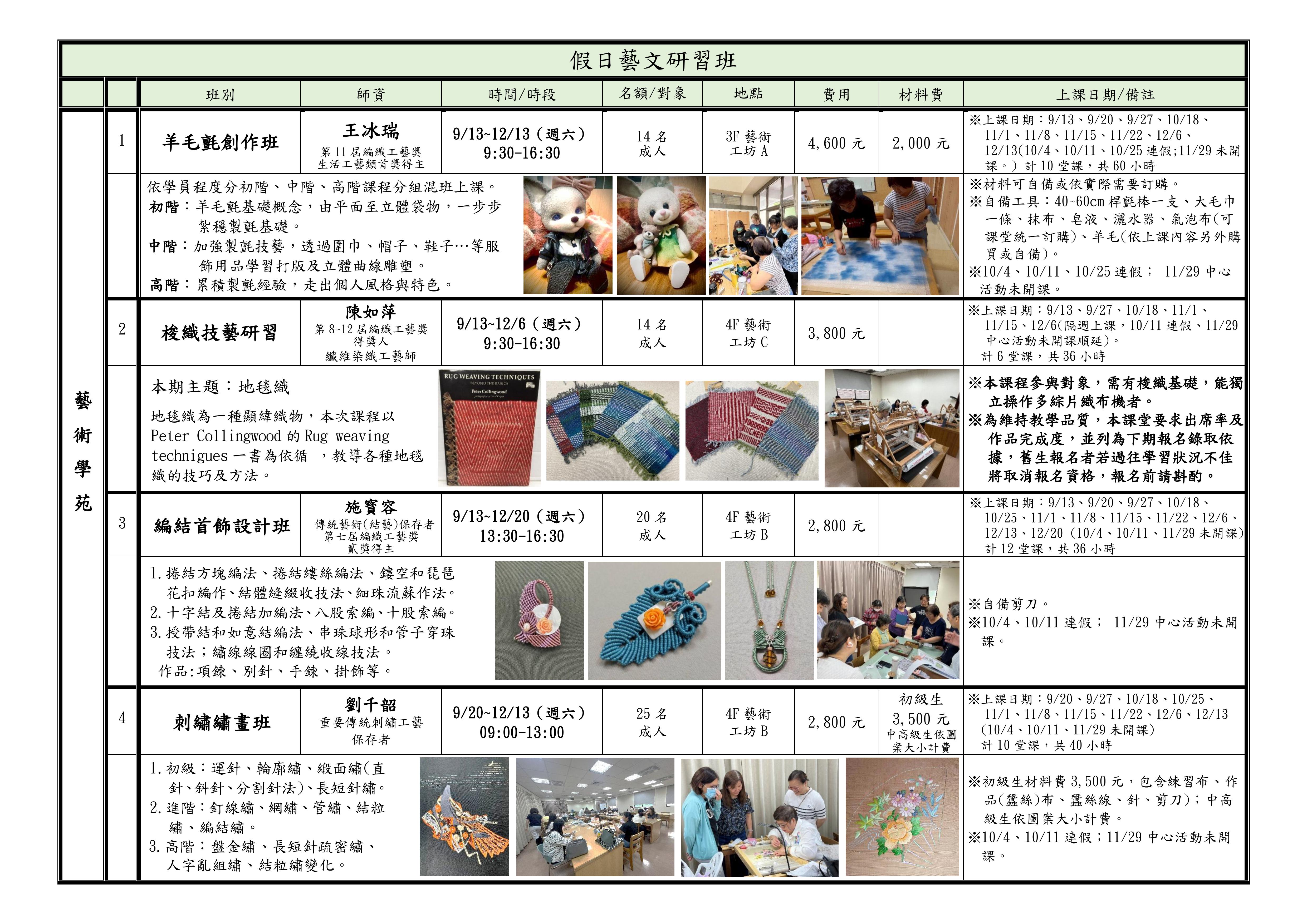 2.梭織技藝研習 9/13~12/6(週六)9:30-16:30