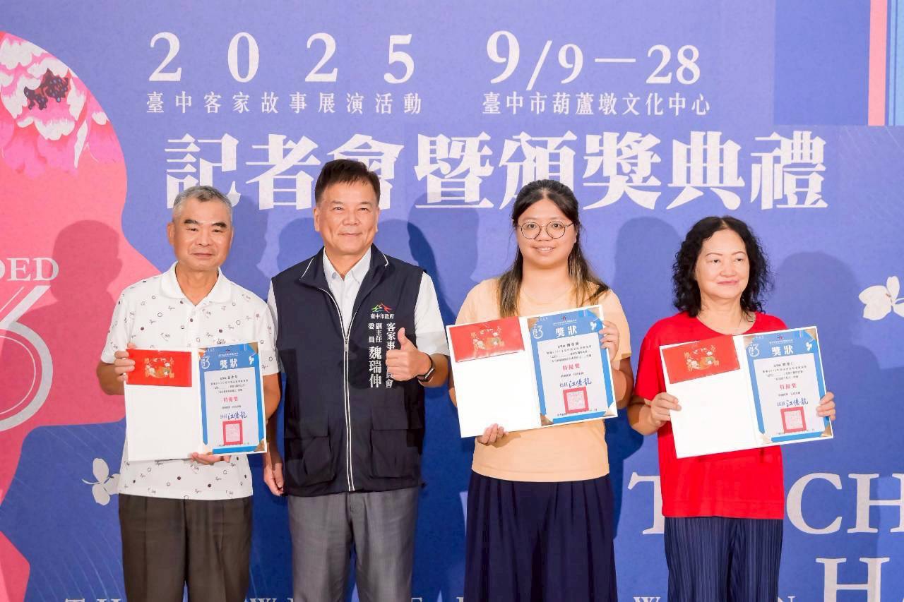 台中市政府客家事務委員會今(10)日上午於葫蘆墩文化中心舉辦「記得2025台中客家故事展演活動」記者會暨徵件頒獎典禮,正式宣布9月為「台中客家月」,一系列精彩活動即日起熱鬧展開。今年「記得」客家音樂會邁入第三屆,規劃擴大為展覽、演講與音樂會三大主軸,邀請市民朋友一同感受客庄記憶與文化力量。