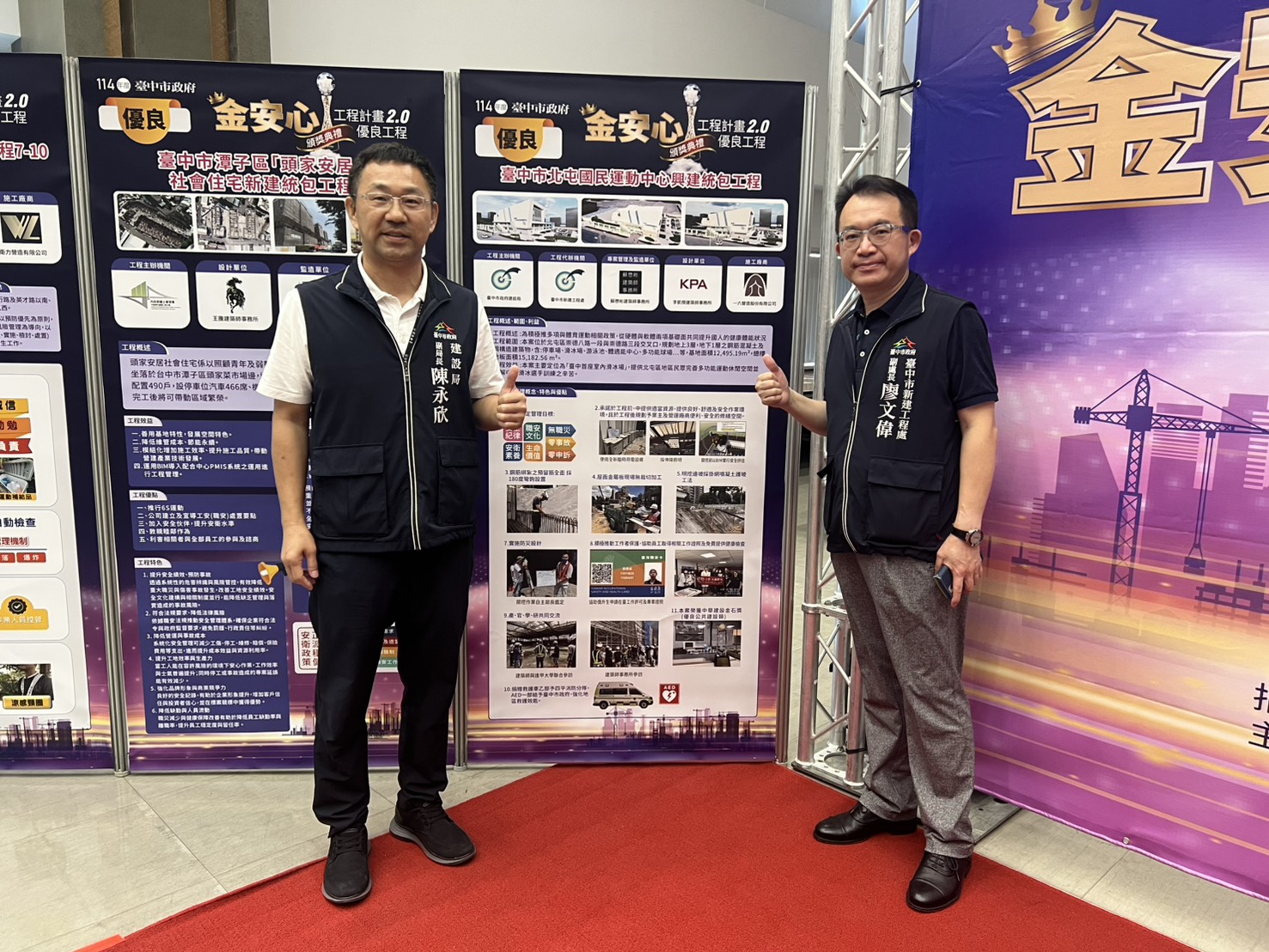 台中市長盧秀燕推動重大建設,秉持「零職災」原則,並推行「金安心工程計畫2.0」,要求工程同時兼顧品質與勞工安全。市府建設局今(114)年以「台中市北屯國民運動中心興建統包工程」勇奪「重大工程組-優良」,更締造連續七年獲頒「金安心獎」的佳績,充分展現市府在公共工程職安防護上的堅定決心與卓越成效。