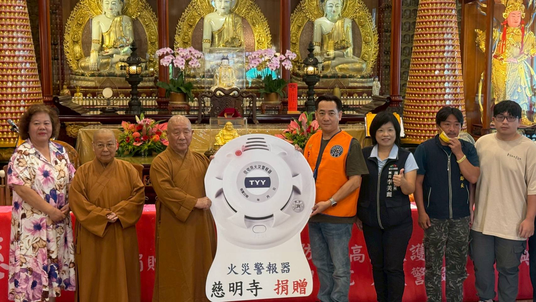 消防局指出,消防局信義及勤工分隊,救護轄區範圍涵蓋中、西、東、南、南屯、大里及烏日區等重要區域,且鄰近台中火車站、LaLaport商圈等重大商業與交通設施,每月平均救護出勤數近600件。隨著產業發展與人口增長,救護需求與出勤次數逐年攀升,為因應民眾緊急救護的需求,並進一步提升救護品質與效率,慈明寺今日特別捐贈可攜帶式心臟電擊器及生理監視器、自動心肺復甦機及12導程心電圖機等先進救護設備予消防局於救護車上使用,也捐贈190顆住宅用火災警報器予南屯區公所用來照顧弱勢民眾。