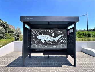 交通局指出,為提供民眾舒適的候車空間,台中市興建上千座公車候車亭,這20座特色候車亭像公共運輸站的彩蛋,位在海洋館前這座最新第20號成員,主角是悠遊大海的豹紋鯊,長長尾巴在候車亭蜿蜒,好像下一秒就要游動起來,周圍有花點窄尾魟、管海馬、白吻雙帶立旗鯛、粒突箱魨、四線笛鯛等海洋朋友齊聚,往下看銀身彈塗魚、招潮蟹對著遊客打招呼,搭公車到站馬上感受「到海洋館了!」的氛圍。