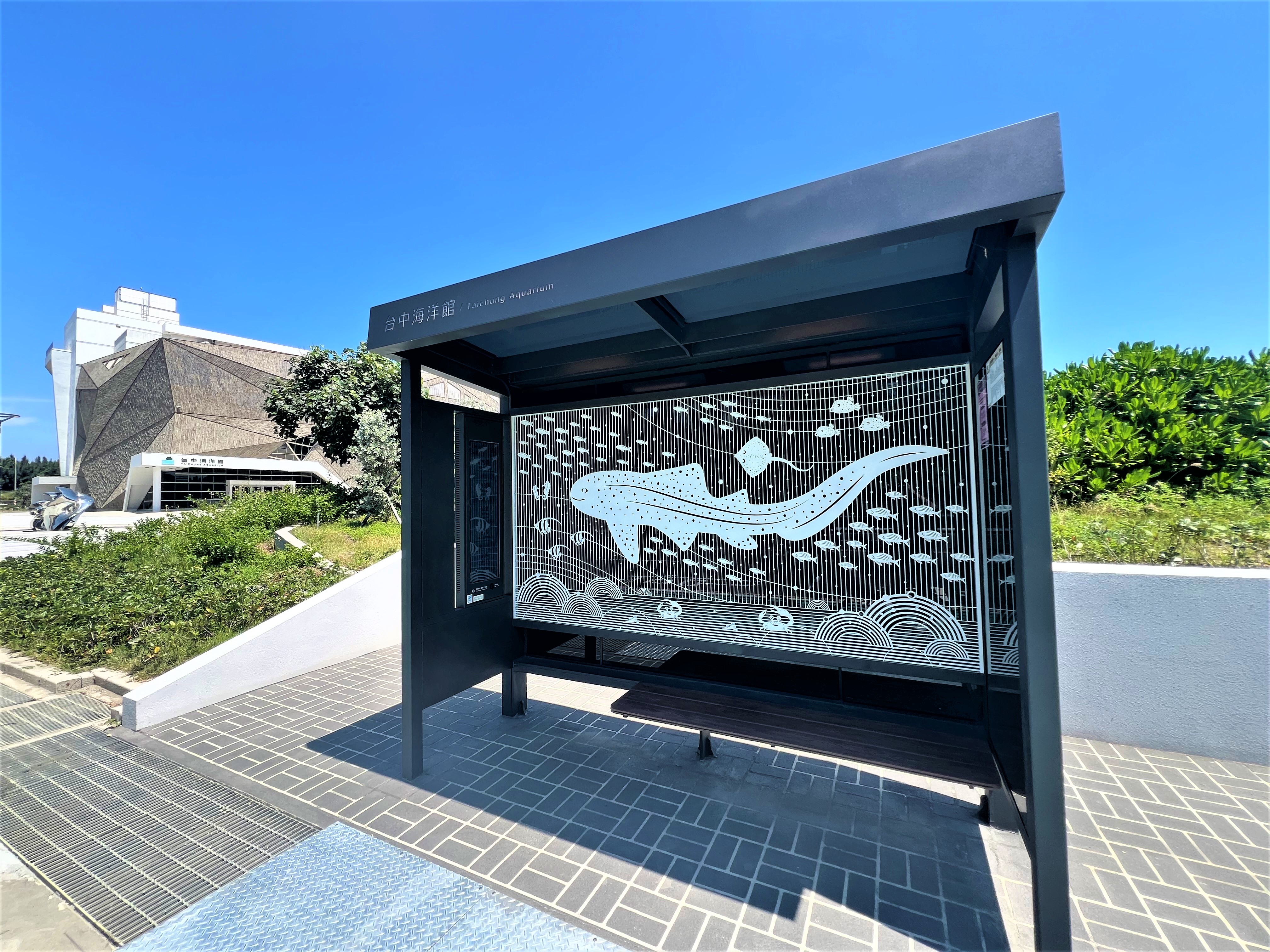 台中市目前共1128座公車候車亭,其中有20座為特色候車亭,最新一座是豹紋鯊現身台中海洋館前的候車亭,散發微笑魅力的豹紋鯊陪乘客等公車,令人聯想到海洋的還有台中港旅客服務中心前候車長廊,由孔雀藍貨櫃打造吸睛候車亭,加上大甲火車站的老榕樹候車亭,三大特色候車亭串連海線觀光,讓公車路線也成為城市觀光動線。