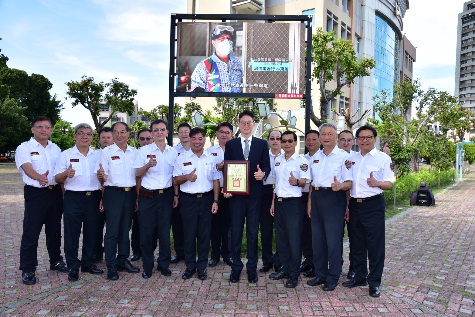 中陽集團回饋地方,關心市民防火防災安全意識,近日捐贈啟用大型LED電視牆給台中市政府消防局,對於辦理各類消防活動及業務推展有重大功用。捐贈典禮由消防局長孫福佑及中陽集團董事長張博鈞共同主持,這次捐贈不僅體現社會各界對市府、消防團隊的肯定與信任,也展現張董事長積極投身公益、回饋社會的精神。