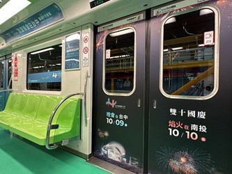 睽違8年,國慶晚會將於10月9日在文心森林公園圓滿戶外劇場盛大登場。為迎接這場盛事,台中捷運公司自今(12)日起推出國慶彩繪車廂,以雙十國慶主視覺為核心,結合梅花、繽紛焰火等設計,營造喜慶熱鬧的氛圍。中捷公司表示,文心森林公園站鄰近會場,搭乘捷運參加晚會最方便,還能愜意欣賞一連串精彩表演。