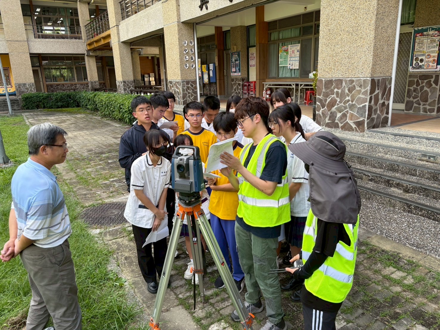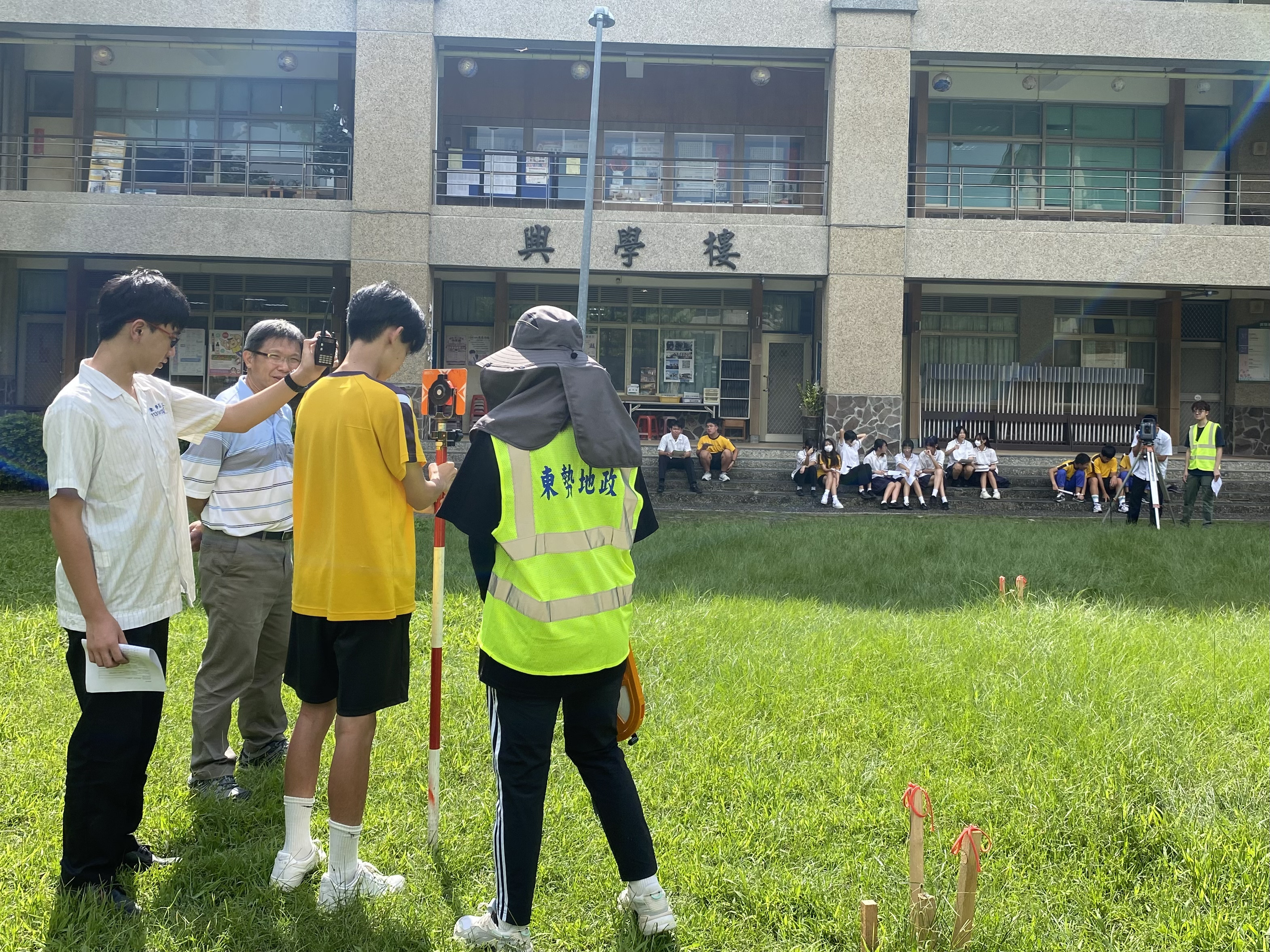 東勢地政事務所推動學徒制傳承,讓技職教育從校園延伸至職場,打造跨域沉浸式的學習體驗。昨(11)日於東勢高工建築科專案實作中,測量人員手把手指導學生,從控制點布設到使用經緯儀完成測量放樣,讓學子不僅學到課本知識,更獲得實務技能。此舉不僅提升學生專業能力與視野,也為未來職涯鋪路,展現市府結合教育資源,提升學子的學習效益。