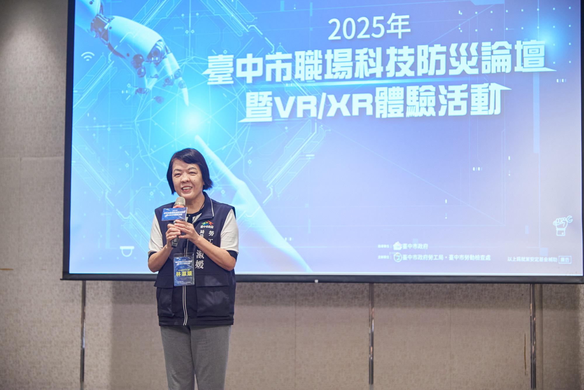 隨著科技發展與職場環境變遷,運用科技工具提升職場安全已成為趨勢,台中市府勞工局今(12)日於台中金典酒店舉辦「2025年台中市職場科技防災論壇暨VR/XR體驗活動」,由勞工局長林淑媛代表市長盧秀燕出席表示,市府團隊一向高度重視勞工安全,積極鼓勵企業導入科技減災應用,並透過沉浸式體驗學習,強化勞工應變能力,打造友善、安全的職場環境。