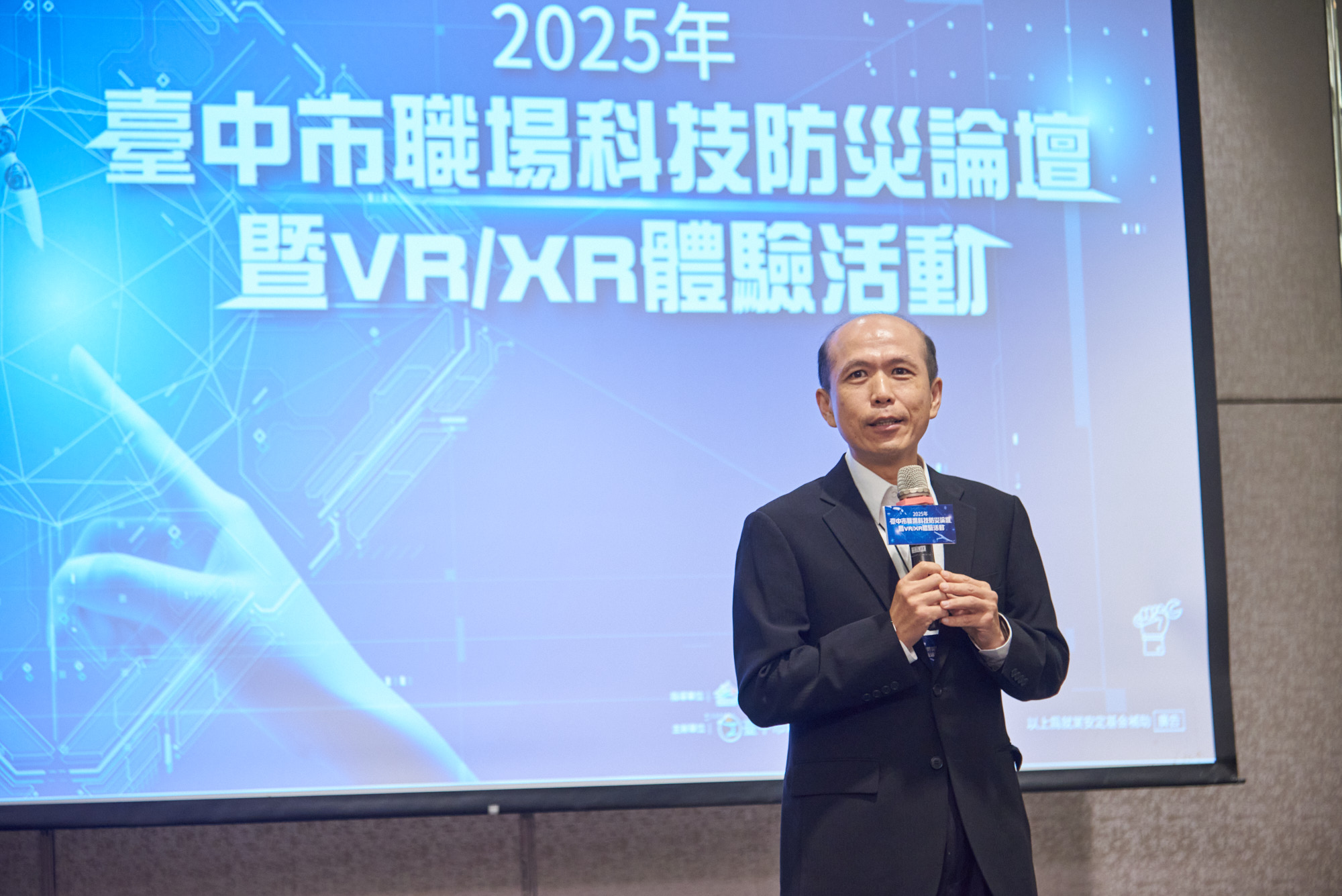 林局長進一步表示,期盼透過今日的科技防災論壇暨VR/XR體驗活動,能為台中市未來在地產業的安全發展奠定更堅實的基礎,激發更多企業導入科技減災設備與智慧管理系統,共同打造一個更安全、韌性更強的勞動環境。