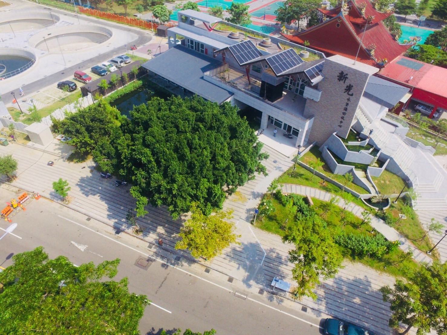 水利局表示,新光水資源回收中心突破傳統污水廠的冷硬印象,以環廠水渠與綠帶取代高牆,並銜接東英公園與祥順運動公園,還保留老榕樹與設置屋頂花園,讓設施與社區景觀和諧融合。園區內推動放流水回收再利用,供應廠內作業、公園灌溉與市民取用,同時開放參訪並結合「黑水號」咖啡廳與辦理校園美術聯展,讓污水廠成為民眾交流與休憩空間。廠區更孕育螢火蟲、蜻蜓及候鳥等生態,展現水質淨化、環境教育與生態保育三重價值。