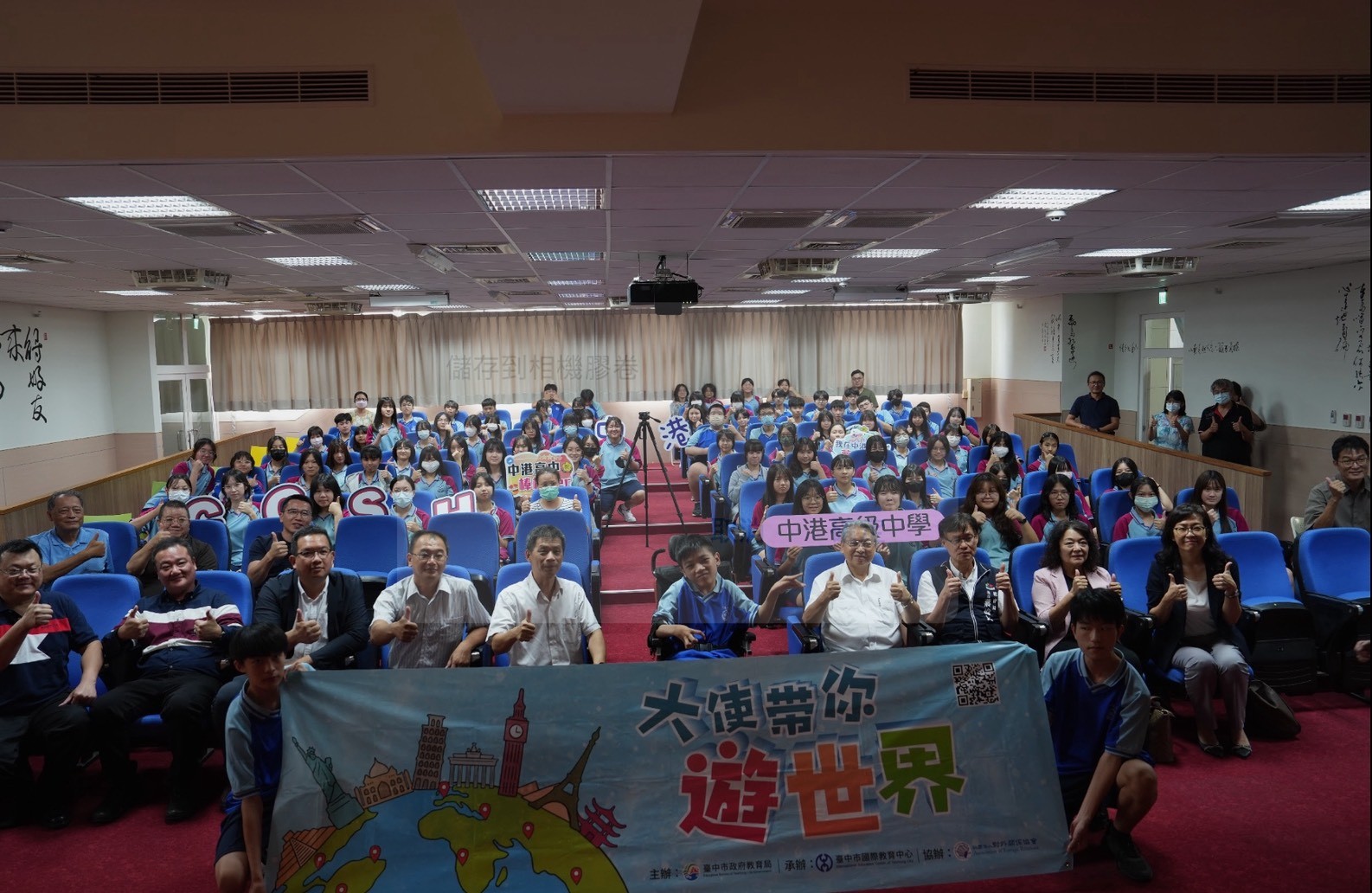 台中市政府教育局為推廣國際教育,自109年邀請退休大使到台中市各公私立高中職學校舉辦「大使帶你遊世界」講座,擴展學生國際視野,至今已有超過2萬名學生受惠。今年持續辦理20場講座,今(17)日在中港高中登場,邀請前台中市副市長令狐榮達以「我們最重要的友邦」為題,與同學們分享豐富的外交經歷,期盼培養學子「接軌亞太、放眼全世界」宏觀胸襟,共計約120位師生到場聆聽。