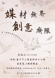 展期:114/8/12(二)-9/30(二) 地點:臺中市立圖書館清水分館 三樓開架閱覽室 內容簡介: 書本,不只是知識的載體,它更是藝術與思緒交會的場所。 這場書展,以筆畫的輕觸與閱讀的靜謐,感受水彩暈染的柔和、鉛筆線條的節奏,體會藝術流動的溫度與詩意。 這場展覽,邀請你放慢腳步,走進色彩與紙張交織的世界, 在翻閱之間,感受藝術流動的呼吸。在每一頁紙上,遇見屬於自己的創作靈感。 展場一隅,特別展出曾雅楓老師的禪繞畫作品 在書香之間增添一抹藝術的細膩,讓閱讀的氛圍多了幾分詩意與想像。 歡迎借閱! |