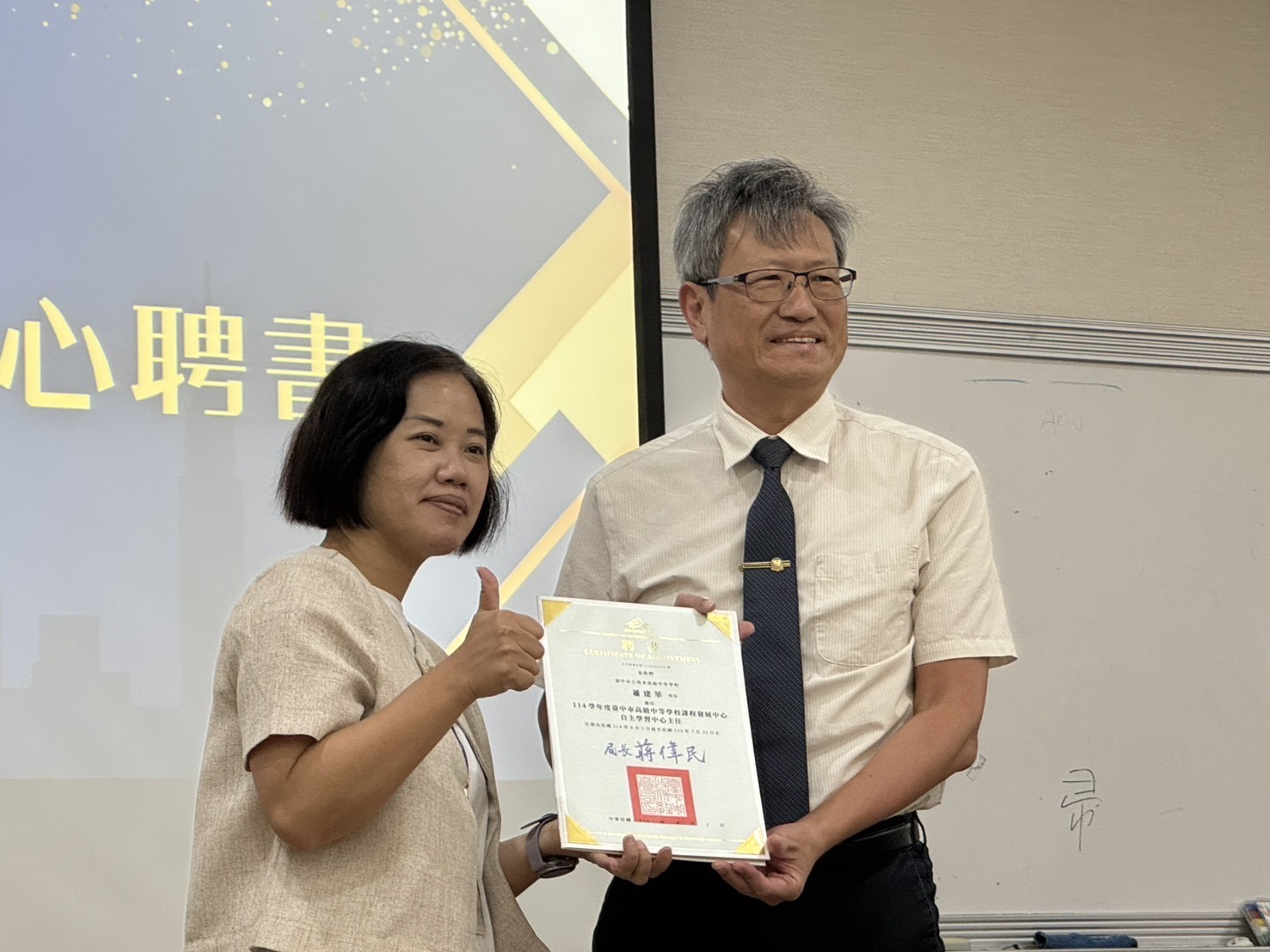 為深化十二年國教課綱實施成效,推動課程創新與教學精進,台中市成立高級中等學校課程發展中心,今(18)日於忠明高中舉辦114學年度高級中等學校課程發展中心授證典禮暨教務主任增能會議,中市今年度「高中優質化計畫教案甄選」表現亮眼,全國僅選出8件特優作品,台中即囊括其中4席,展現台中市教育創新的豐碩成果。