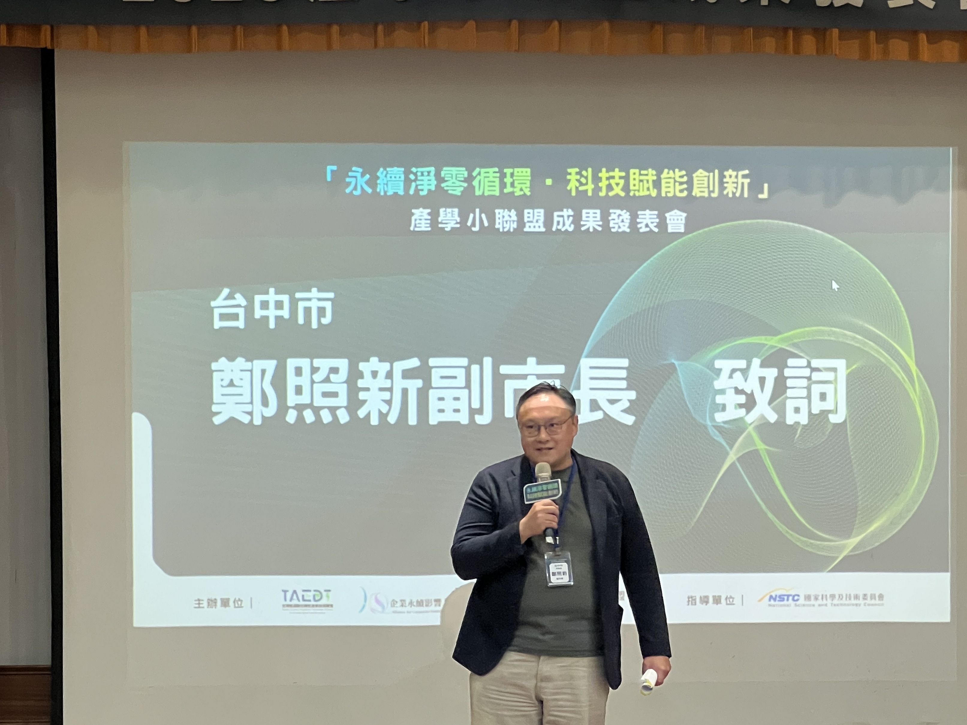 為推動2050淨零排放目標,東海大學「企業永續影響力聯盟」及「淨零碳技術與服務聯盟」,與中華大學「能源數位轉型聯盟」三大聯盟跨校合作,今(18)日合作辦理「永續淨零循環‧科技賦能創新」產學小聯盟成果發表會。台中市副市長鄭照新出席致詞,強調整合產官學界的力量,是推動企業ESG永續發展、落實能源轉型與淨零減碳路徑的關鍵,成為台中邁向2050淨零目標的重要驅動力,亦是市府致力推動永續淨零轉型的具體展現。
